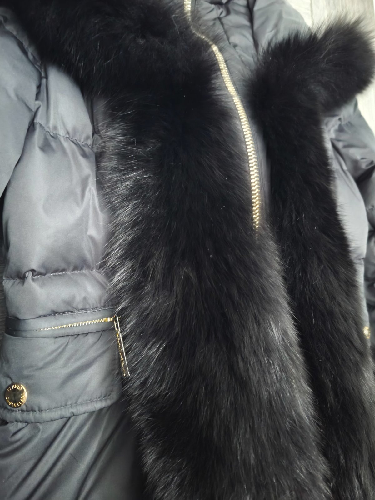 Top stav ako nova viac menej skladovana oblecena bola len 2x je mi zial vacsia, lemovana krasnou kozusinkou z lisky. Velmi tepla kvalitna, talianska znacka Flavio Castellani talianske cislovanie 44 no najlepaie sedi S/M az M. Povodna cena velmi vysoka.