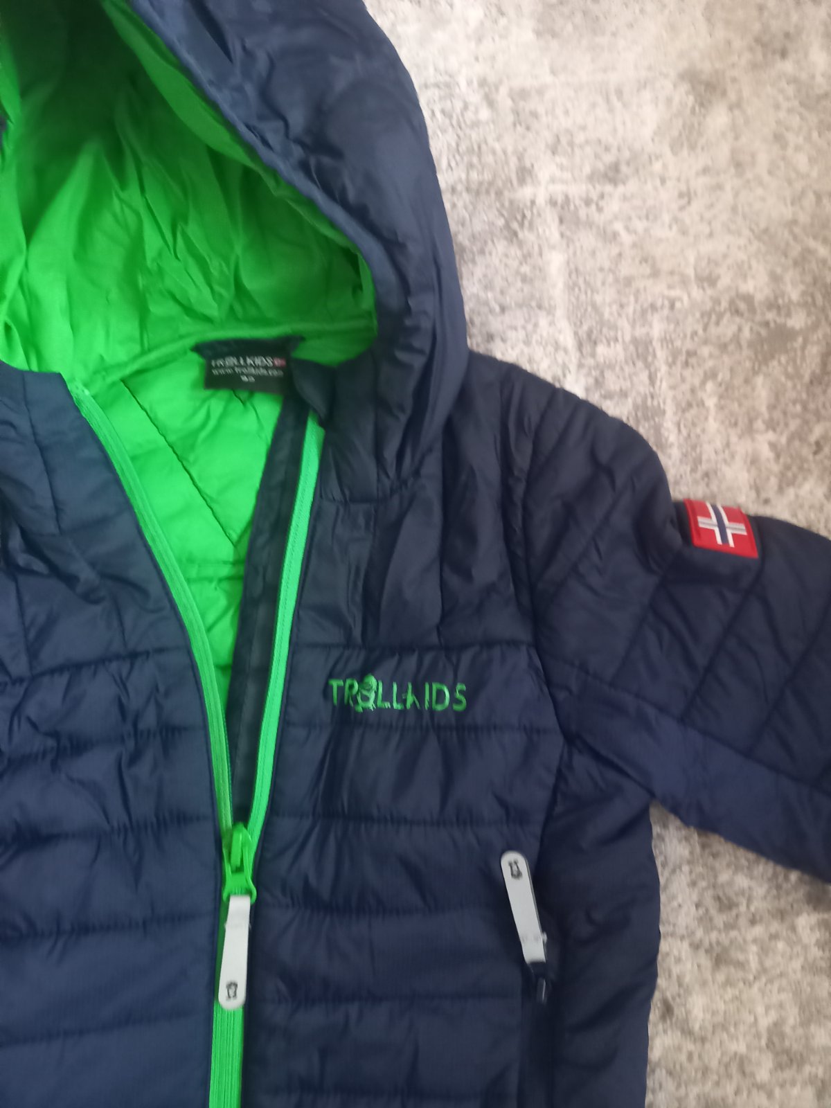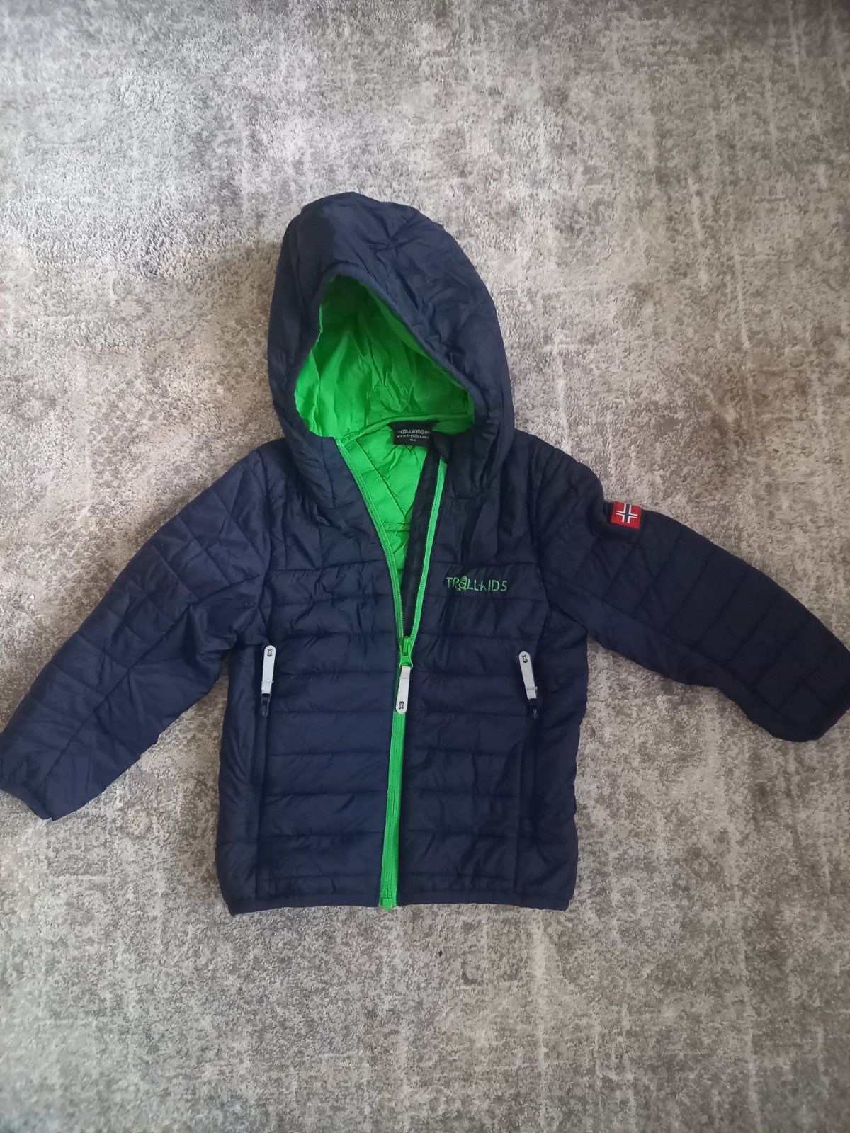 Kvalitná funkčná prechodná bunda nosena jednu sezónu bez poškodenia. Značka Trollkids, pôvodná cena 60e.