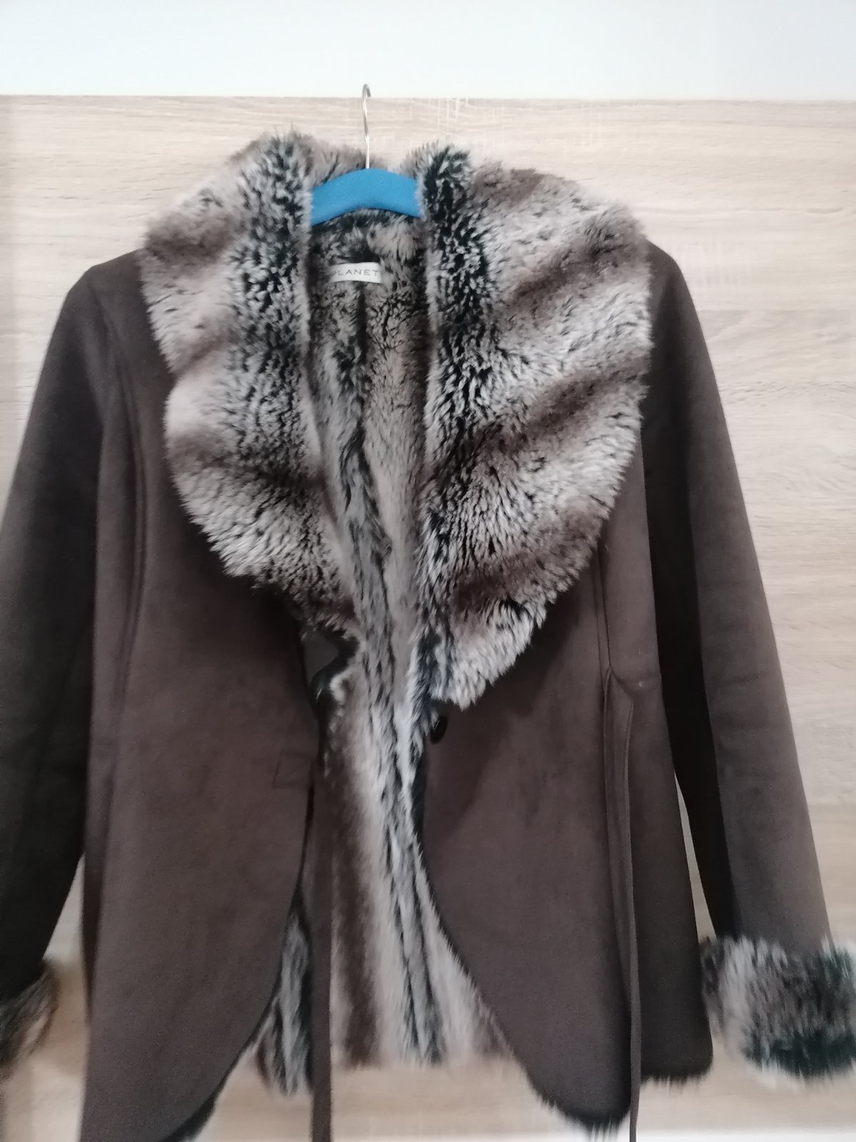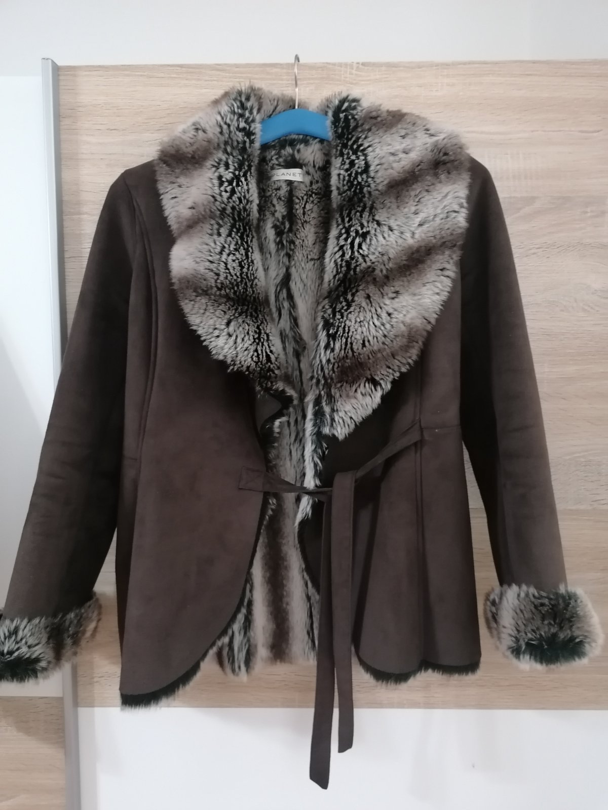 Predám nový krásny dámsky kabátik z umelej kožušiny čokoládovohnedej farby, veľkosť S, riaďte sa rozmermi:
