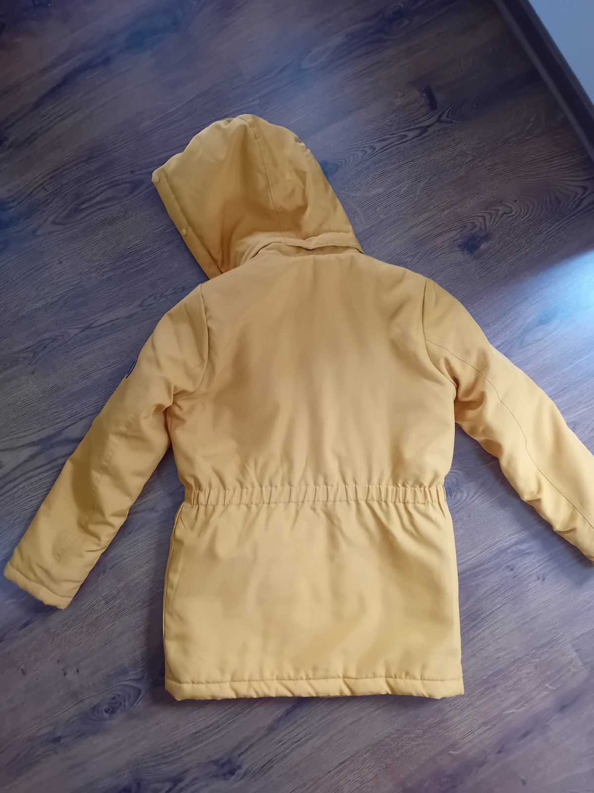 Prešívaná predĺžená bunda s kožušinou Reserved Farba krásna koralova, alebo Jantárová Kozusinka odoberatelna Bundička je nepremokavá Koralova veľkosť 158 116 dĺžka je 67 CM rukáv od pazusky je 32 C...