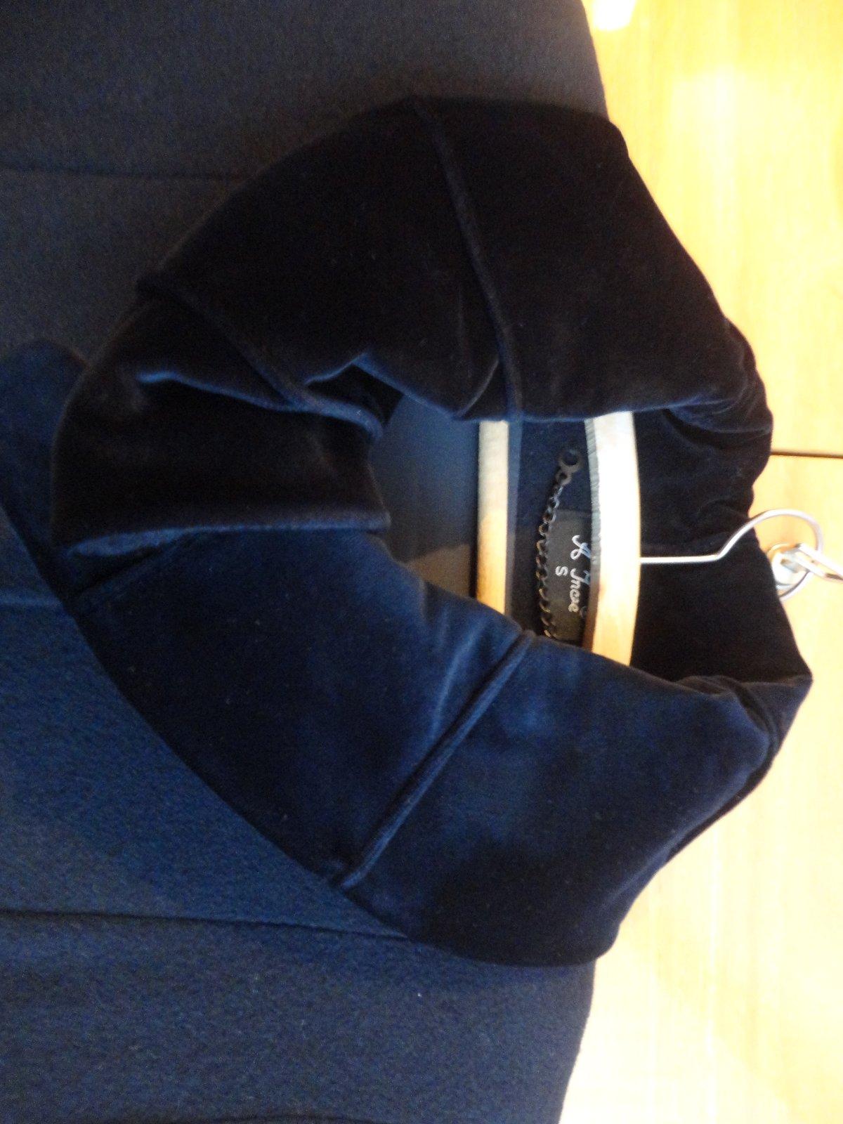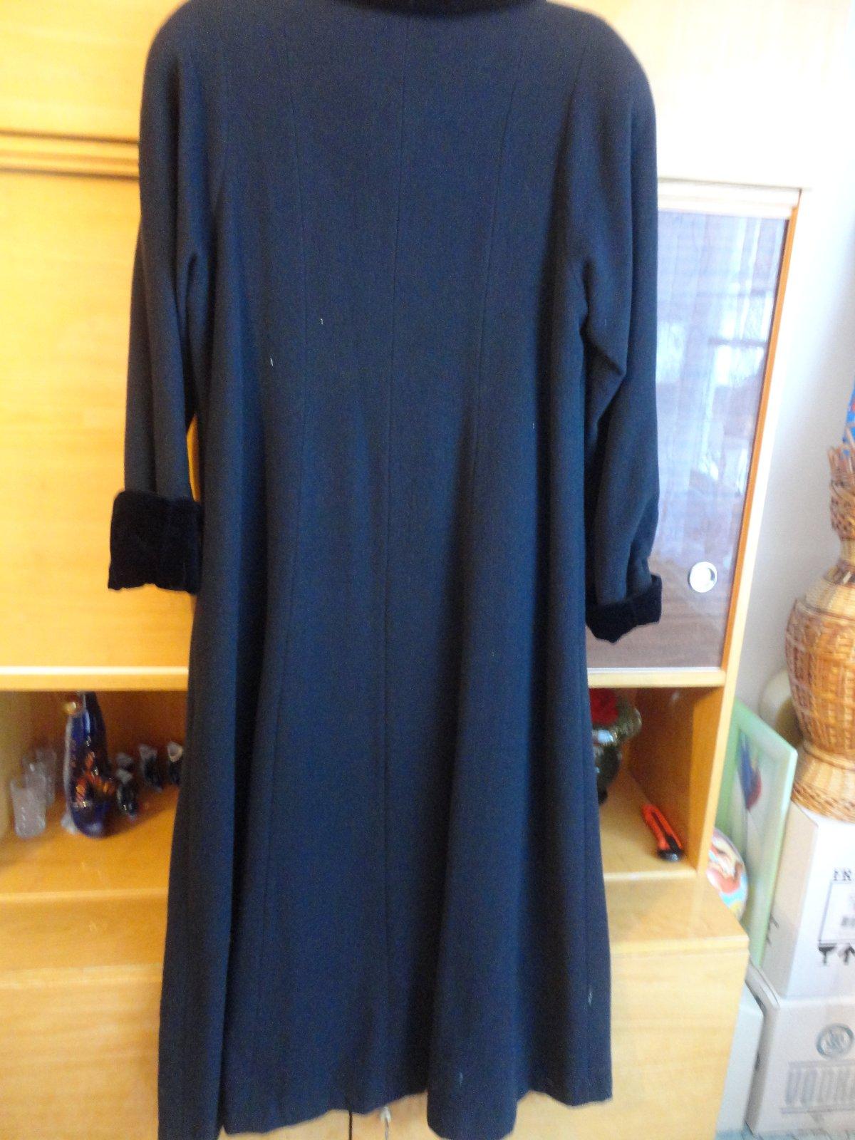 Pár krát oblečený dlhý kabát, s krásnym golierikom, dlžka 134 cm, cez prsia 104 cm, rukáv 82 cm, ramená 42 cm