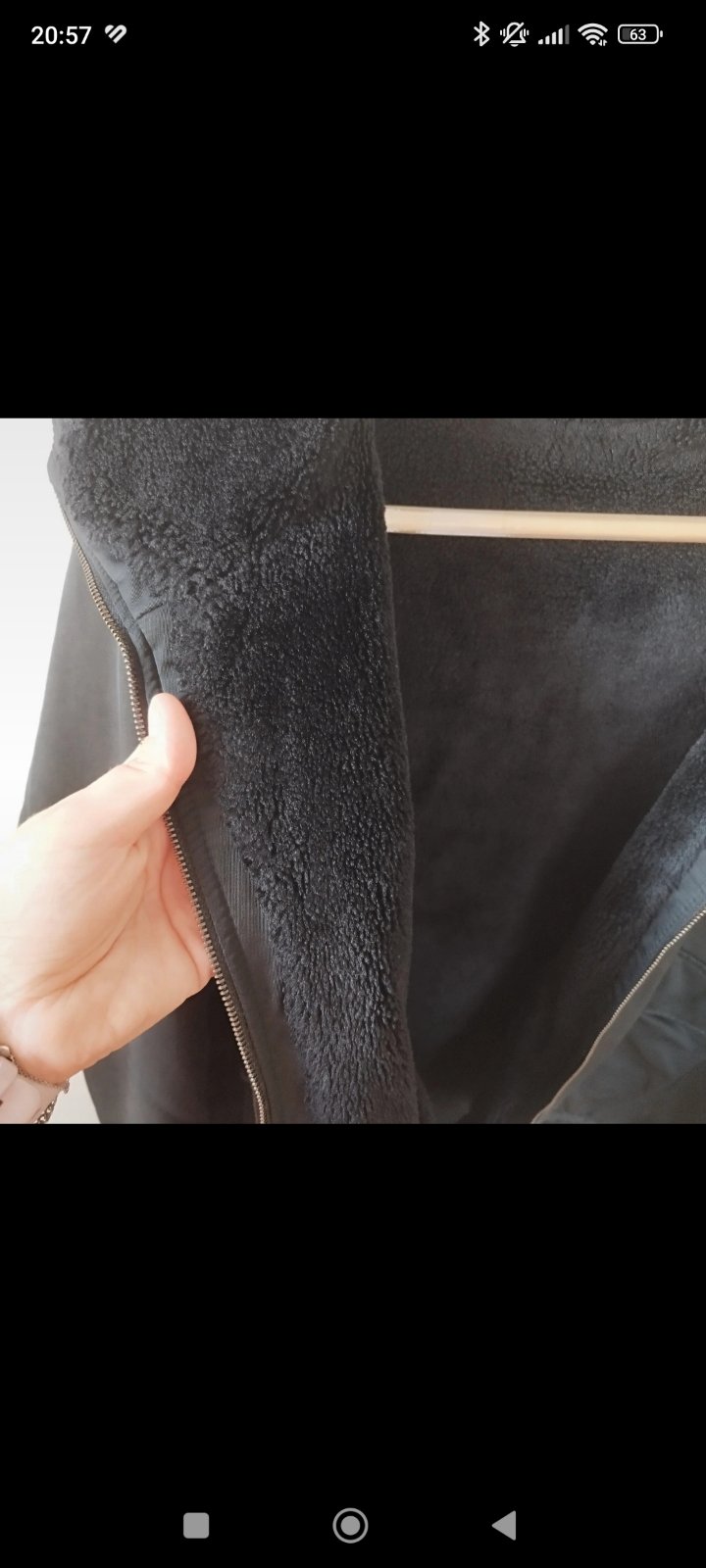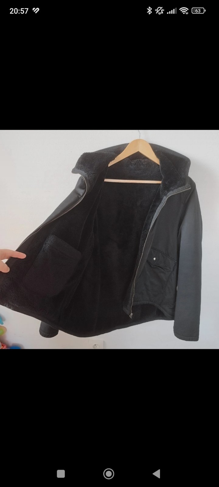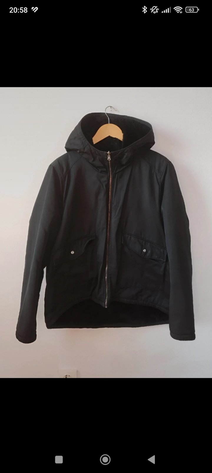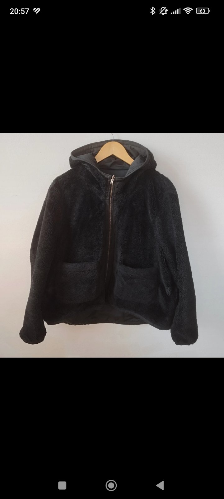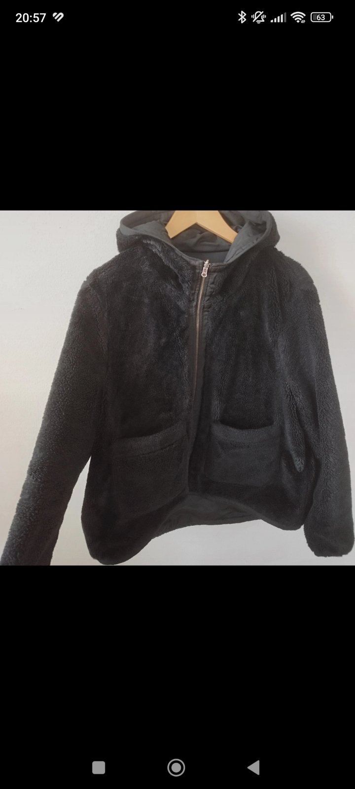 Obojstranná bunda nosena jednú zimu, veľmi príjemná na dotyk, plyšová, tepla. Veľmi pohodlná na nosenie.