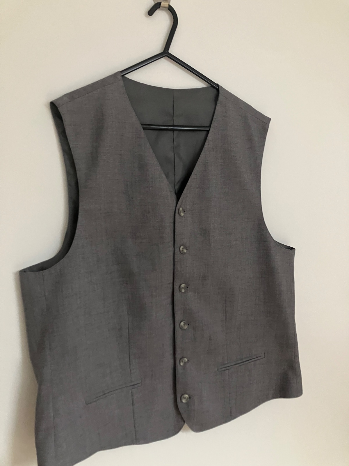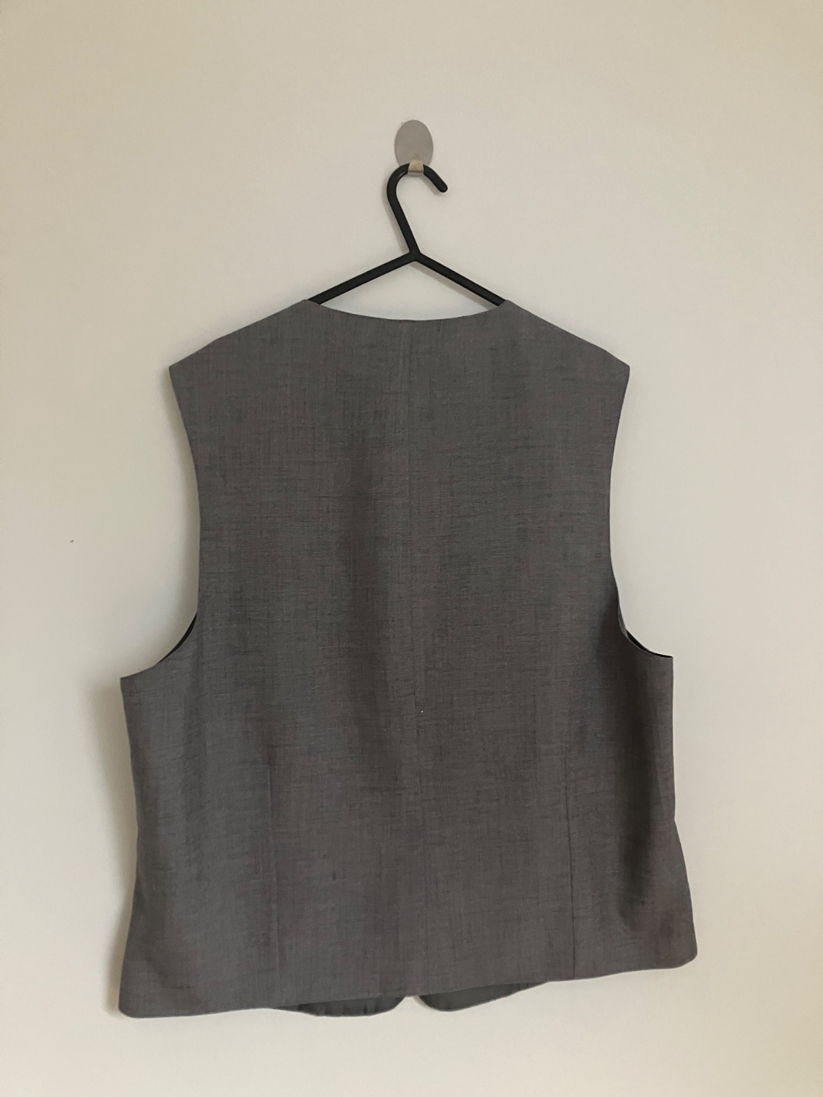 Vesta má krásny „tailored“ look, ktorý pôsobí veľmi upravene a štýlovo. Dá sa nosiť klasicky elegantne alebo ako oversize dámsky kúsok – na fotke je oblečená na veľkosti S ✨ Skvelo vyzerá napríklad cez rolák, košeľu alebo aj len tak pre moderný layering vibe.