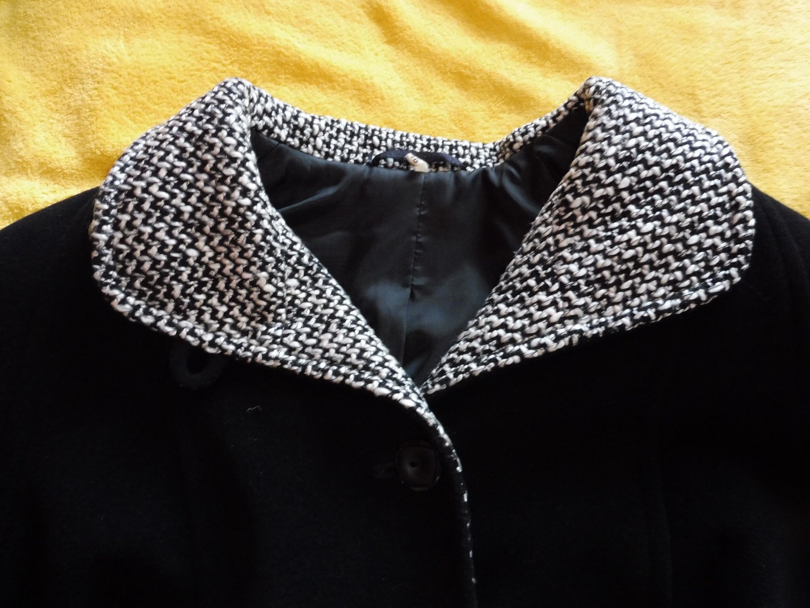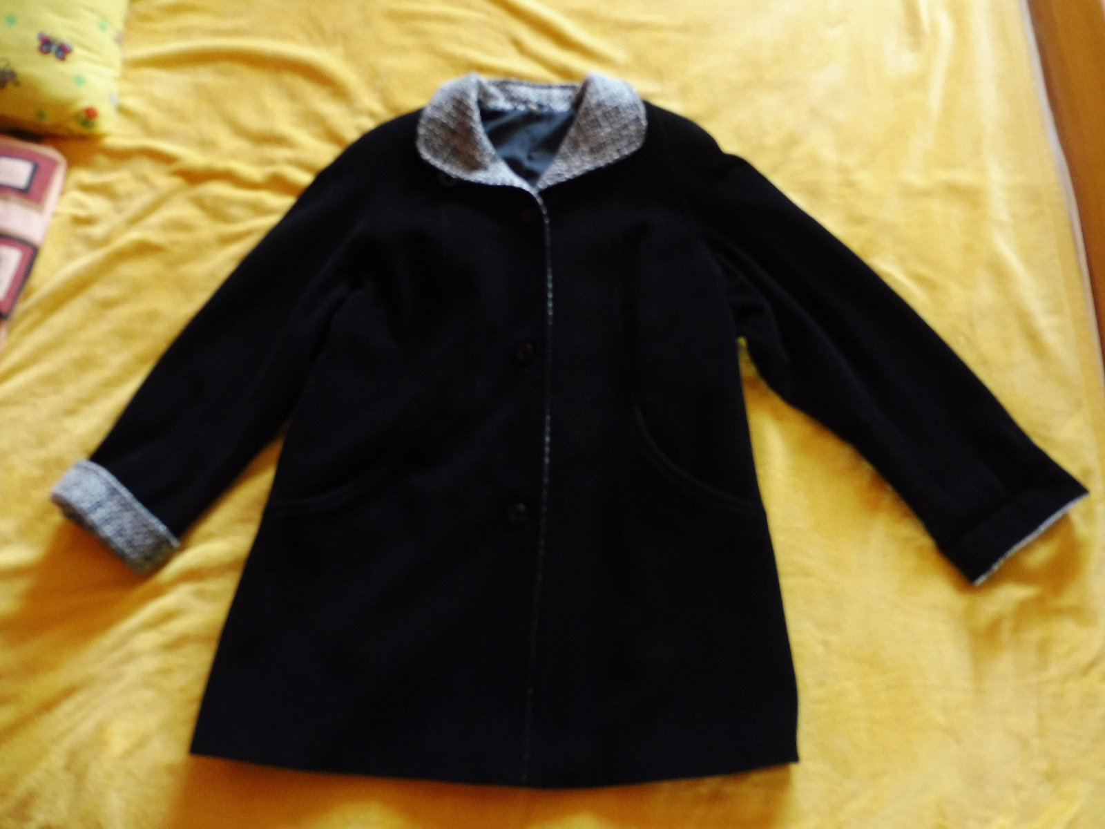 Predám čierny kabát na zimu vo veľmi dobrom stave. Vyrobený na Slovensku. Miery: výška = 89 cm, šírka pod pazuchami = 2x63 cm, boky = 2x65 cm. Je bez dier a fľakov. Cena je bez poštovného, v KE možný osobný odber.