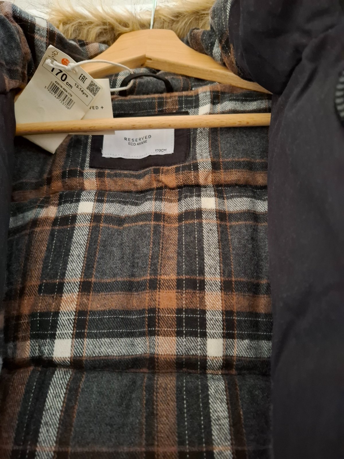 Chlapčenská zimná dhlšia vetrovka Reserved, nová nenosená, výplň duté vlákno. Dĺžka cca 86 cm. Cena 35€ + poštovné.