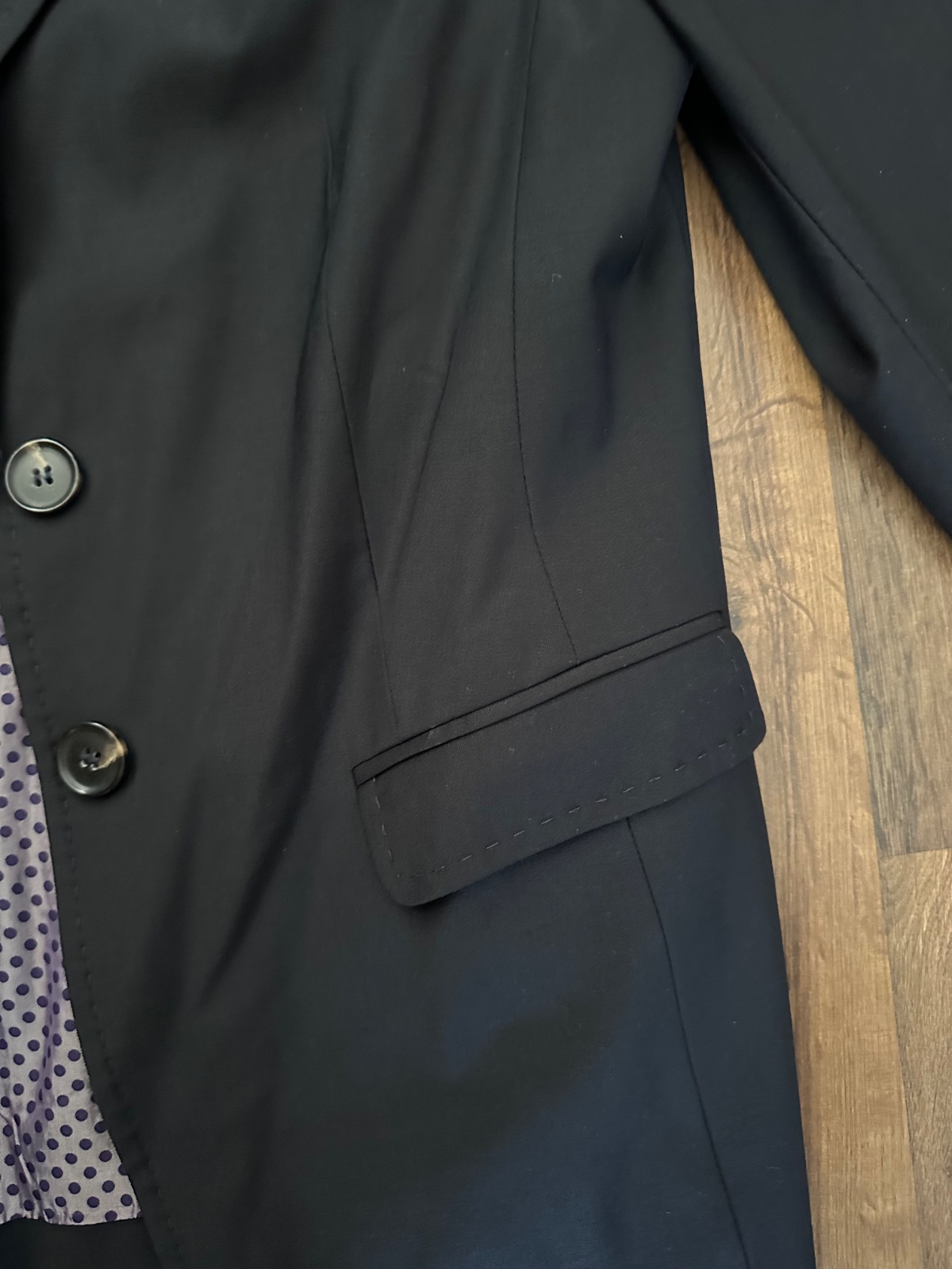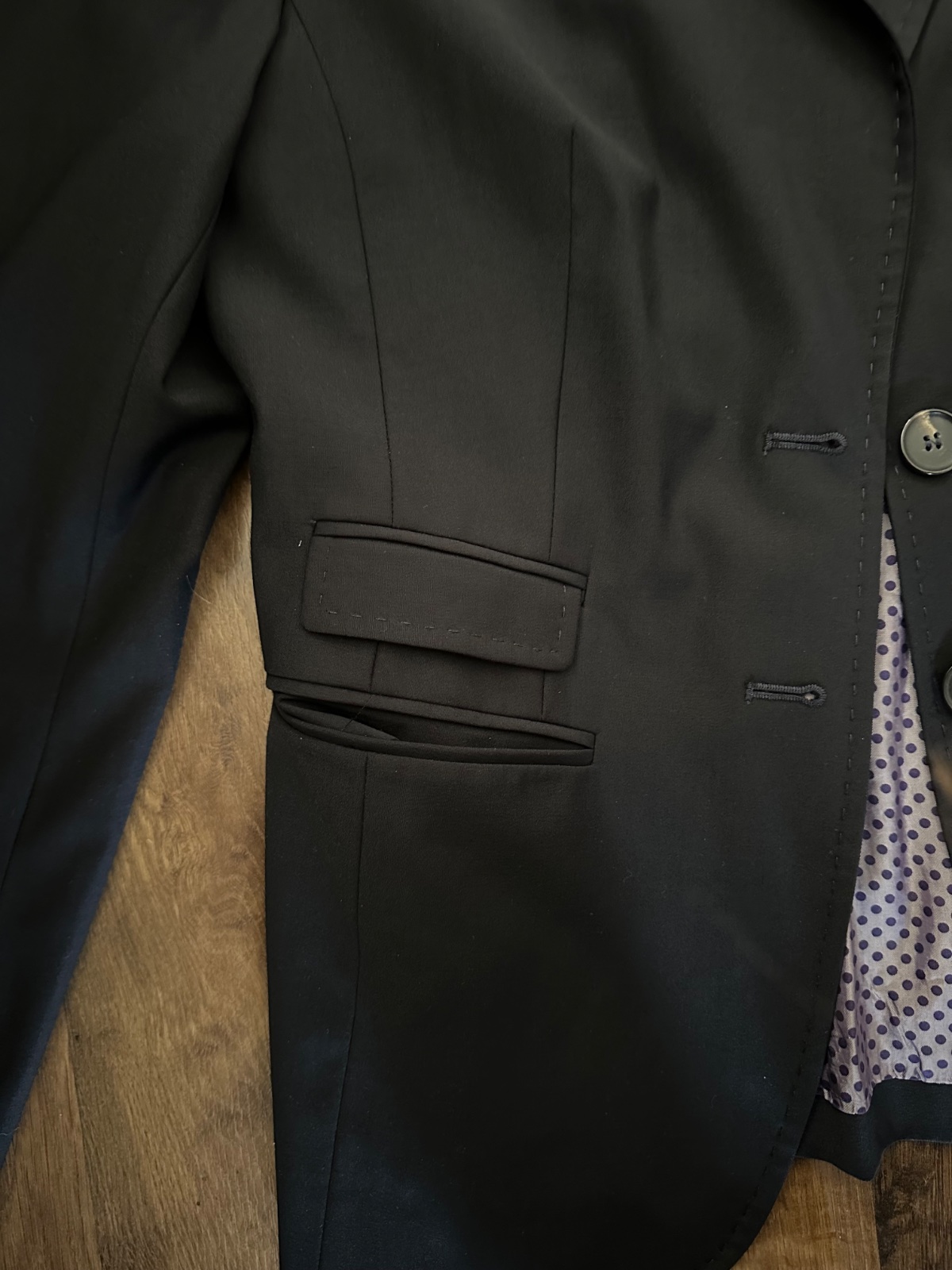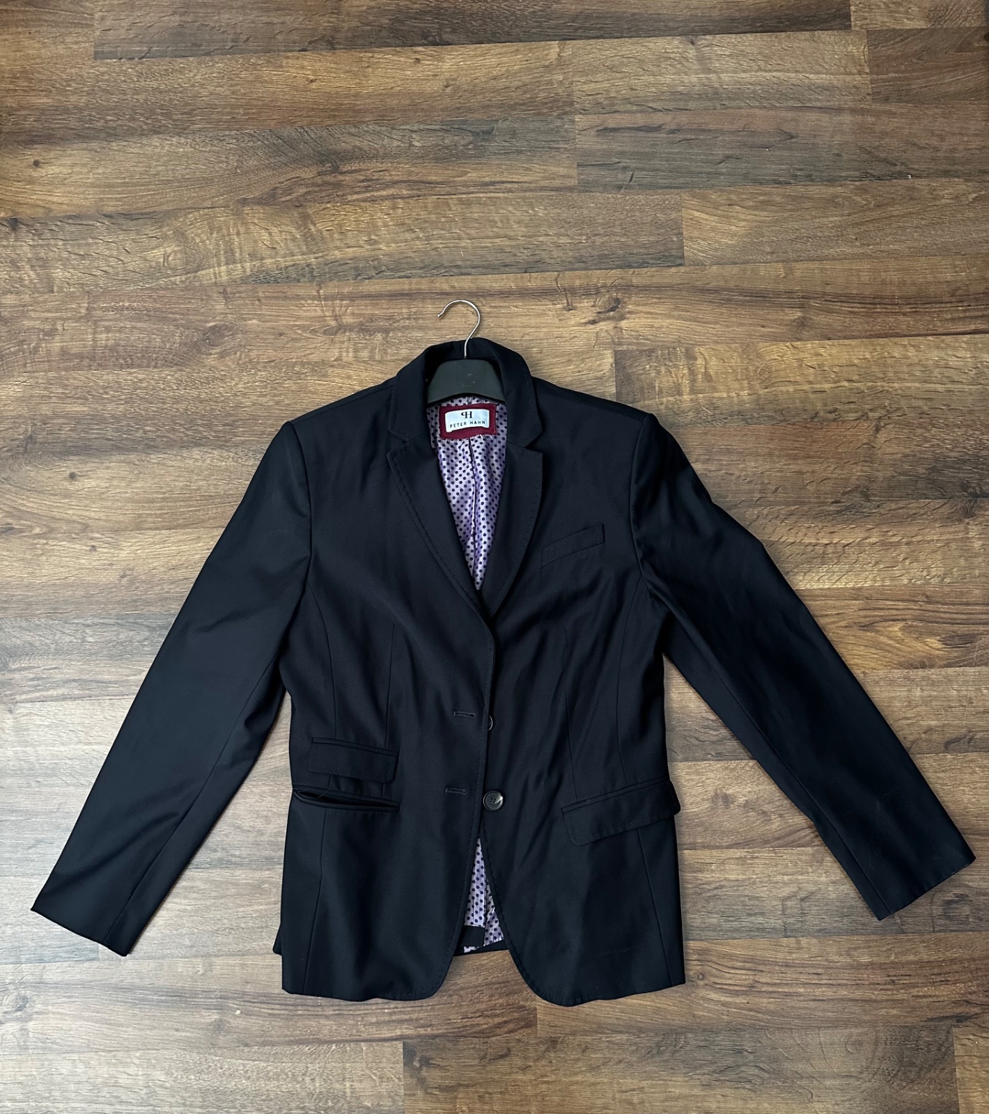Predám dámske sako značky Peter Hahn, je elegantný a nadčasový kúsok v čiernej farbe. Veľkosť 42 poskytuje pohodlný, ale zároveň upravený strih vhodný na rôzne postavy. Sako sa zapína na dva decentné gombíky a vzadu má klasický rozparok, ktorý zlepšuje pohyb a dodáva mu jemne formálny vzhľad. Je vyrobené z kvalitného materiálu a pôsobí veľmi vkusne, no zároveň univerzálne – hodí sa ako do práce, tak aj na spoločenské príležitosti. Prakticky nenosené, vo výbornom stave.