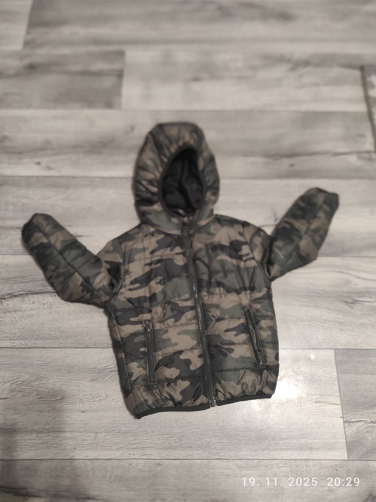 Predlzena zimna bunda / parka, vel.104/110, sedi na cca 3-5r (syn nosil od 3,5-4,5r). Nosena, farba miestami trochu sprana, inak dobry stav. Cena + posta