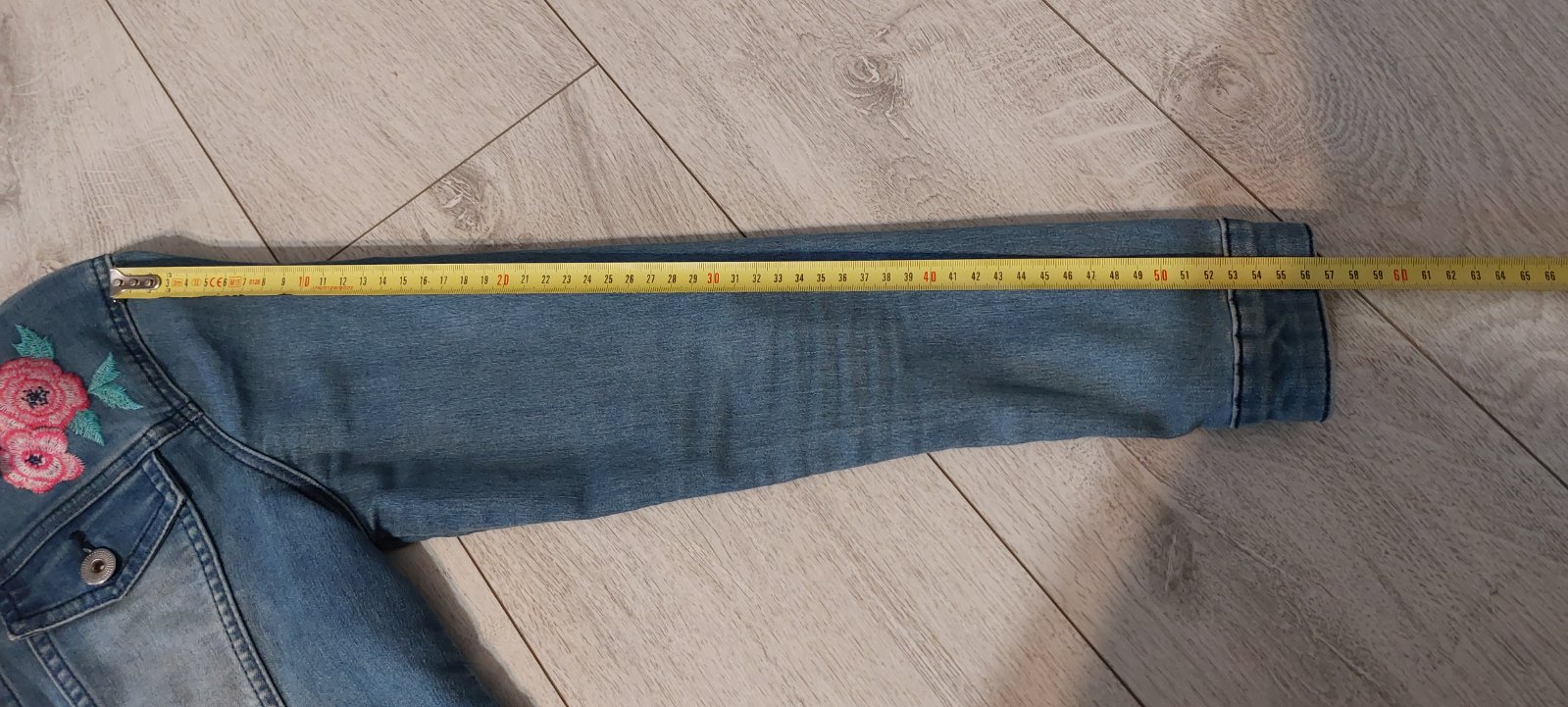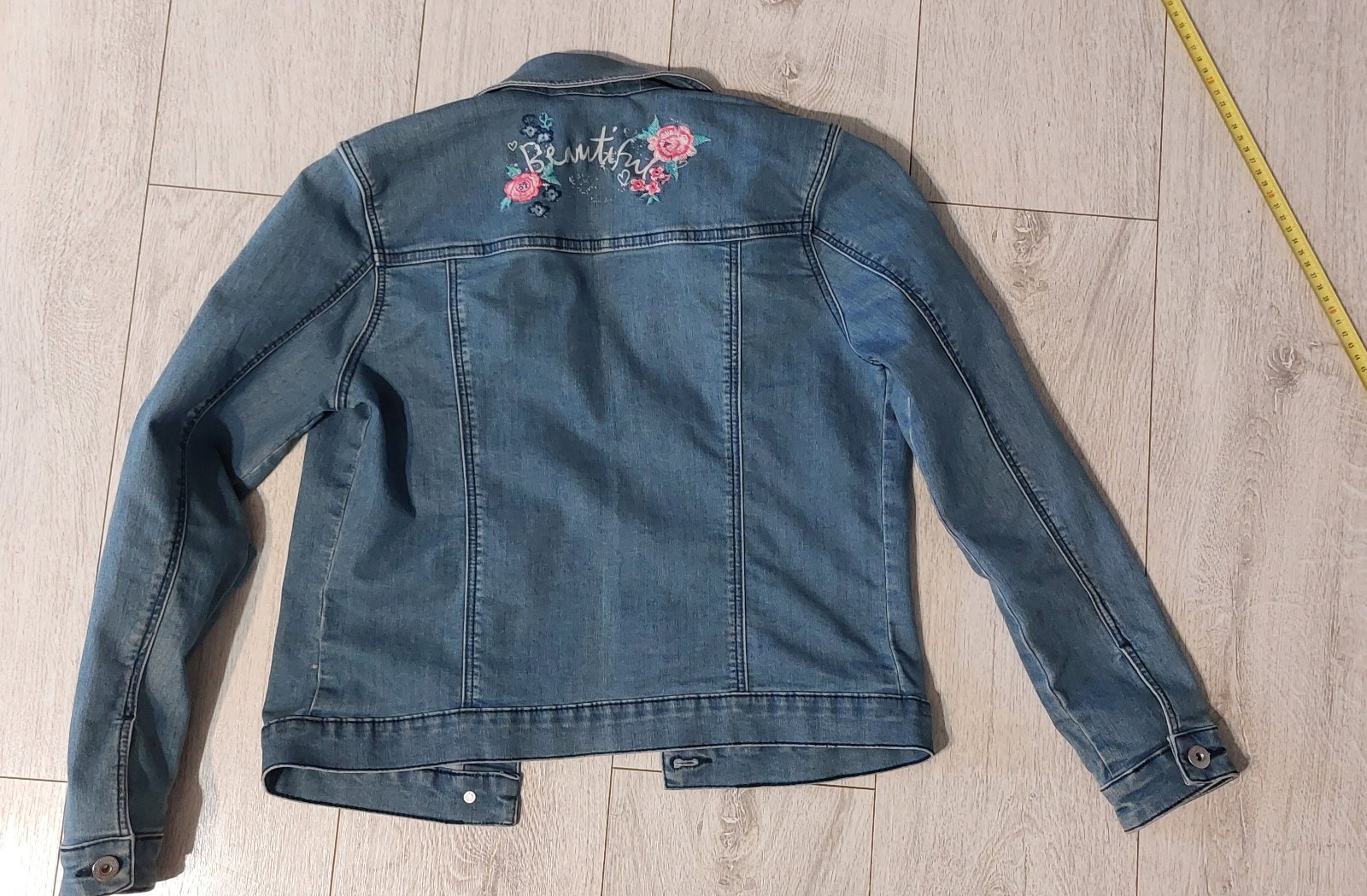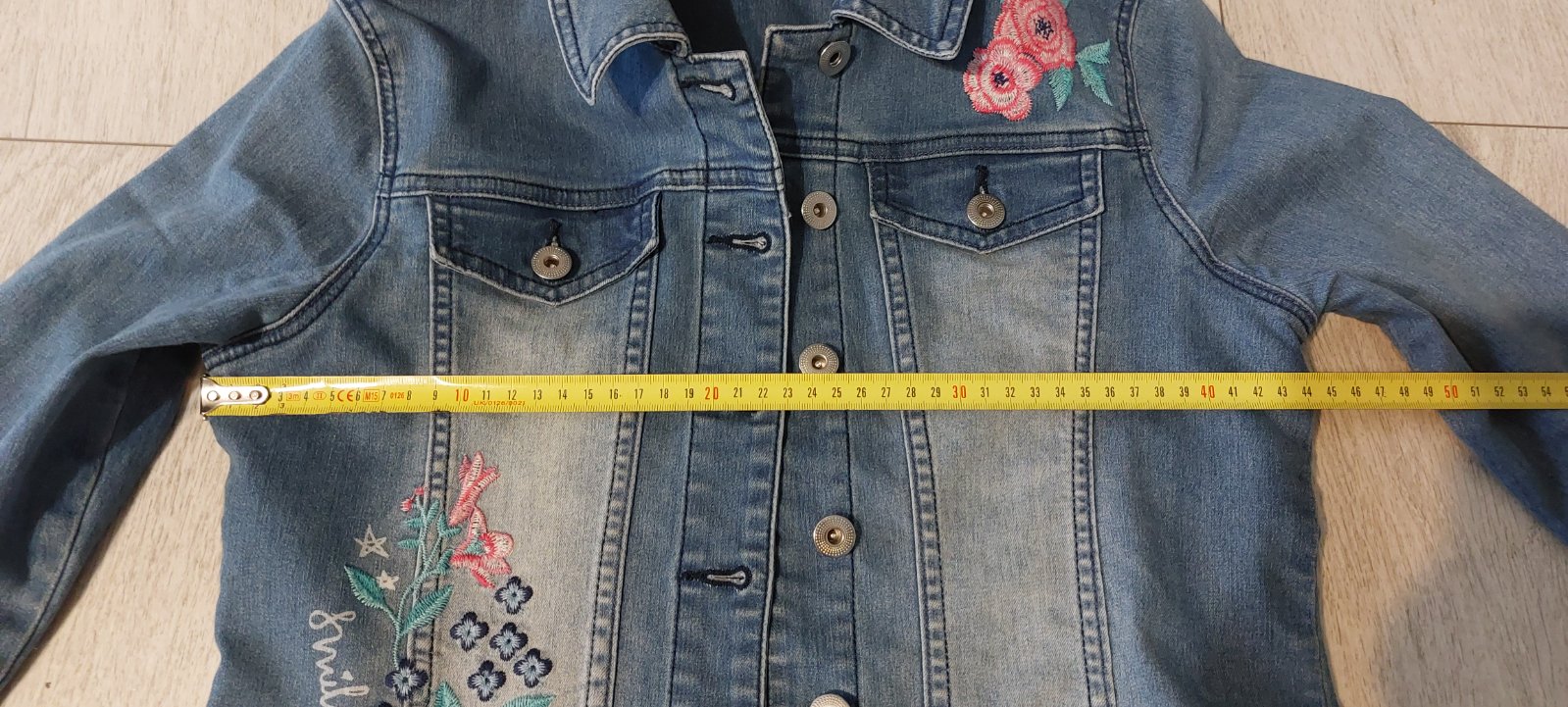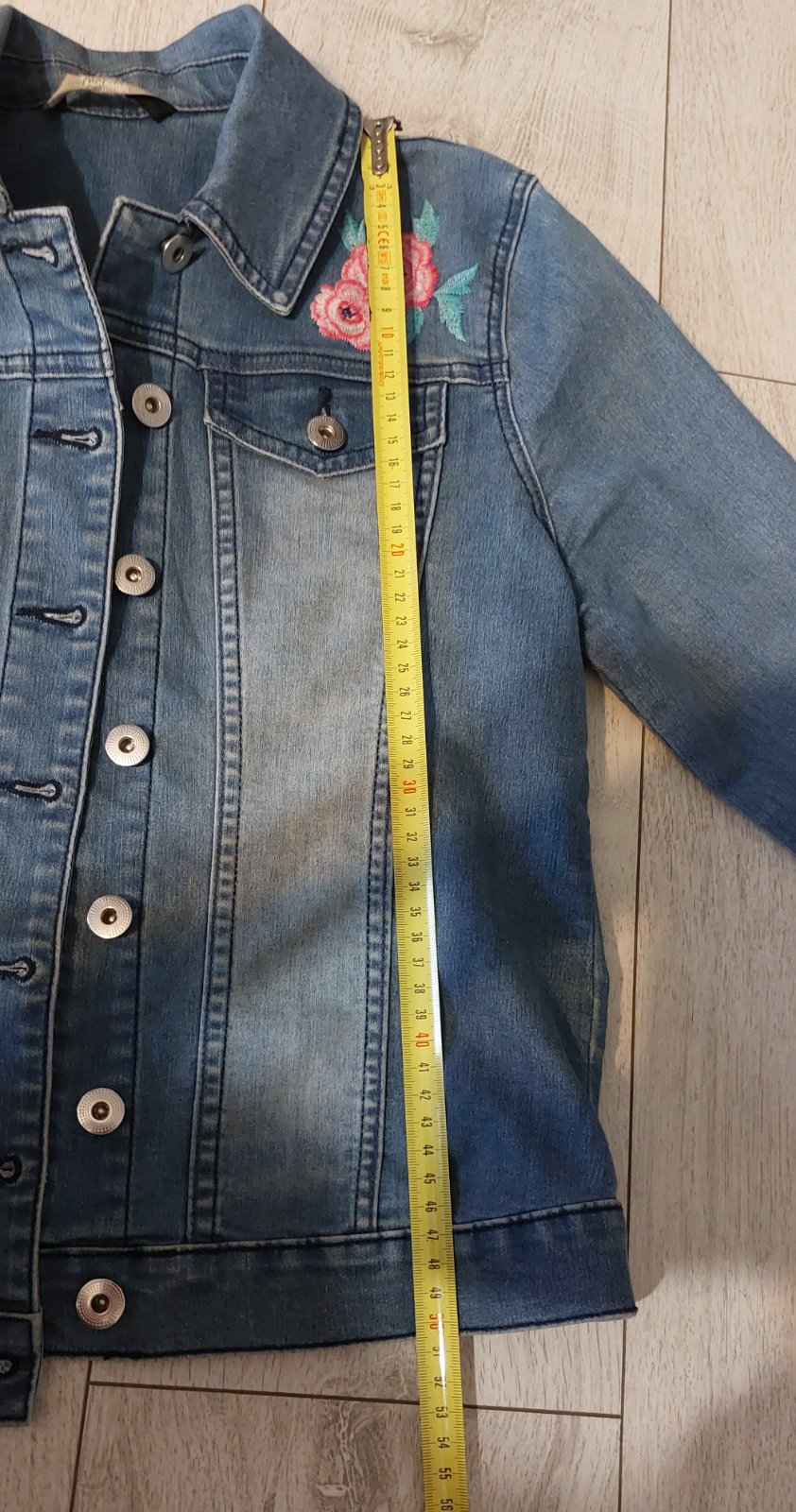 Riflová bunda s kvetinovou aplikáciou