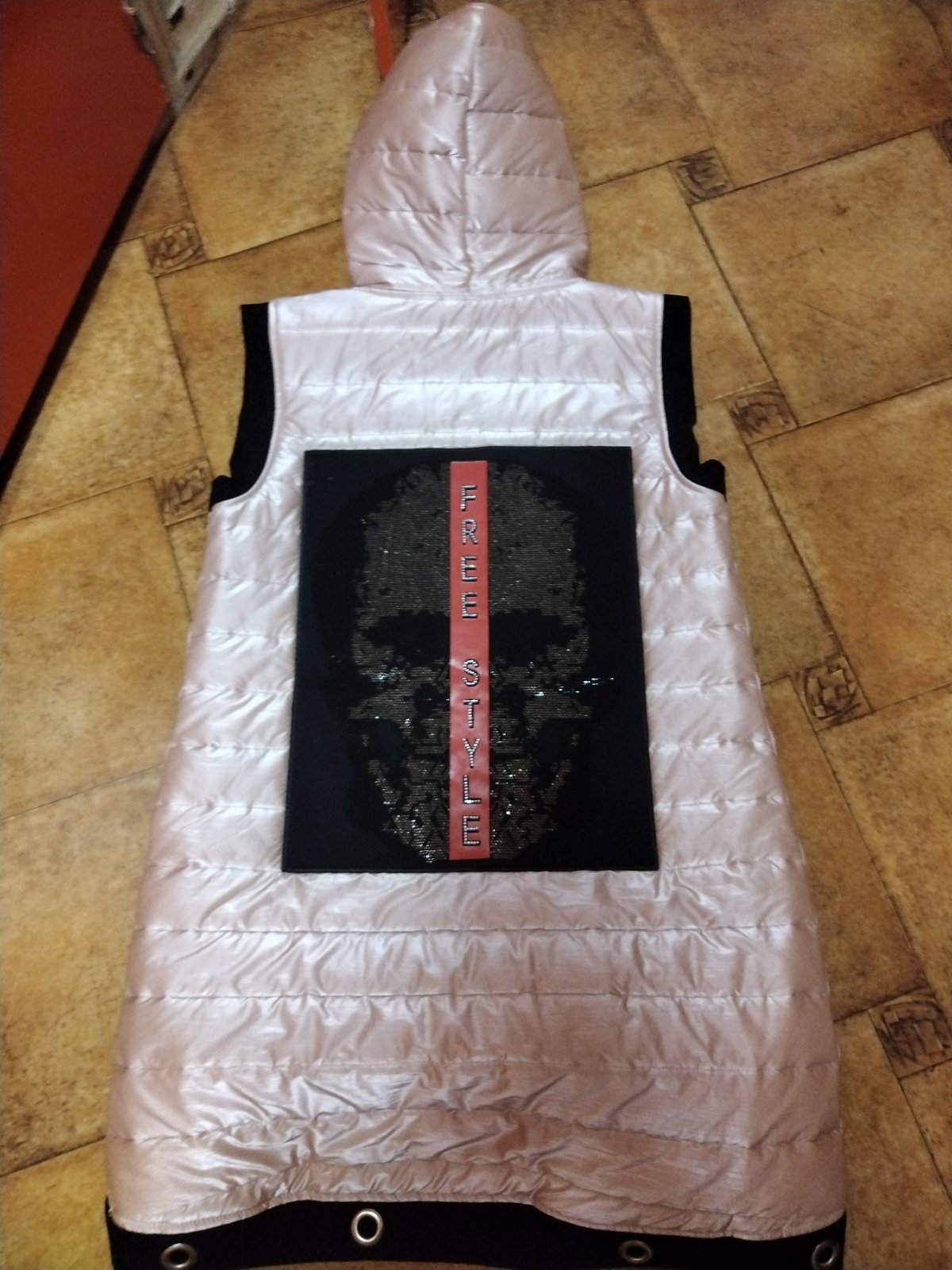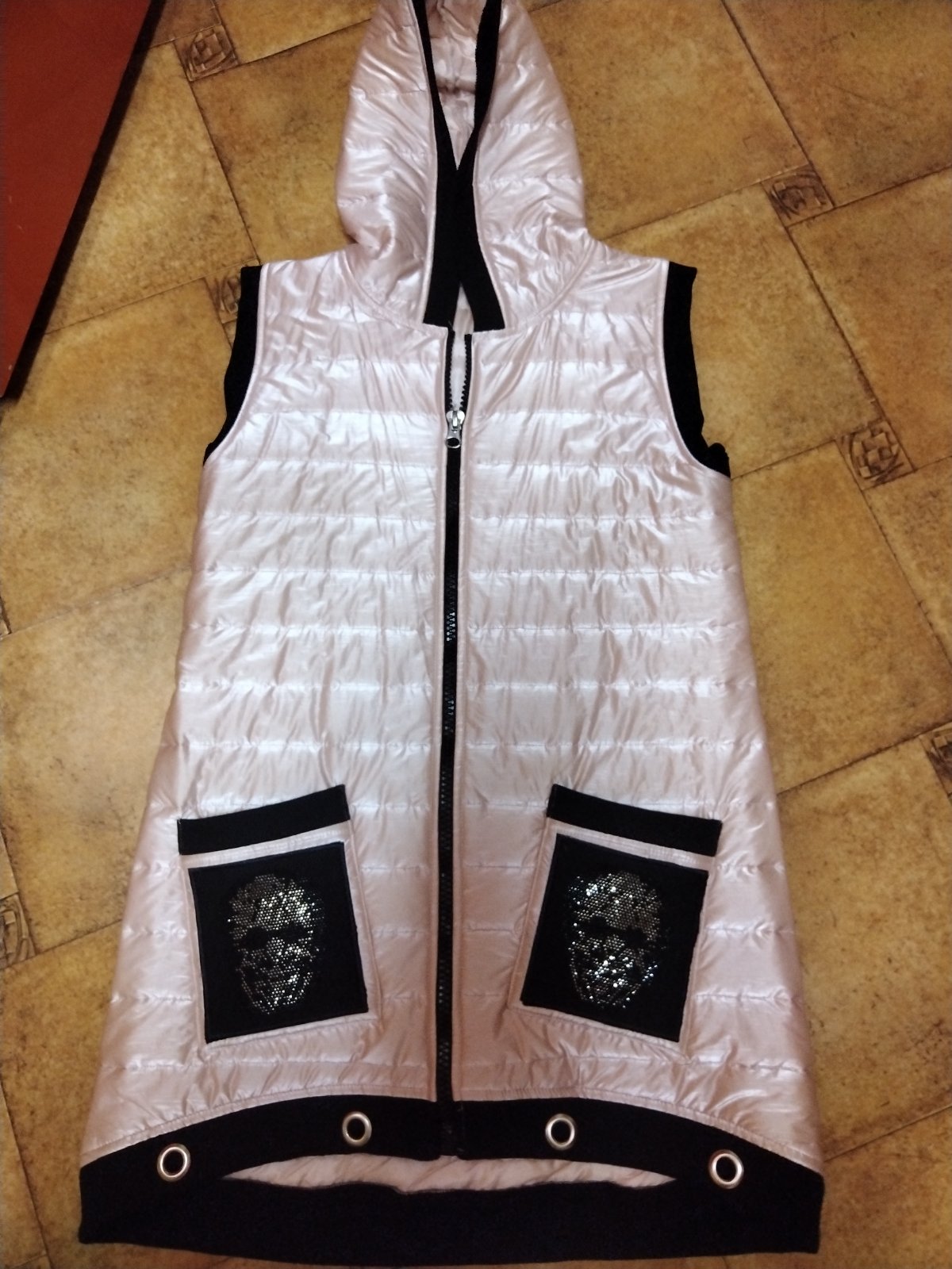 Kvalitna damska vesta,mierne oteplena vatelinom,"riflovy" vzor,lahučka.100%polyester.nova. se38 ROZMĚRY:vel.42,cez prsia 2x57cm,cez pas 2x54cm,dl 67cm. VELIKOST:42 POŠTOVNÉ A BALNÉ:3,5