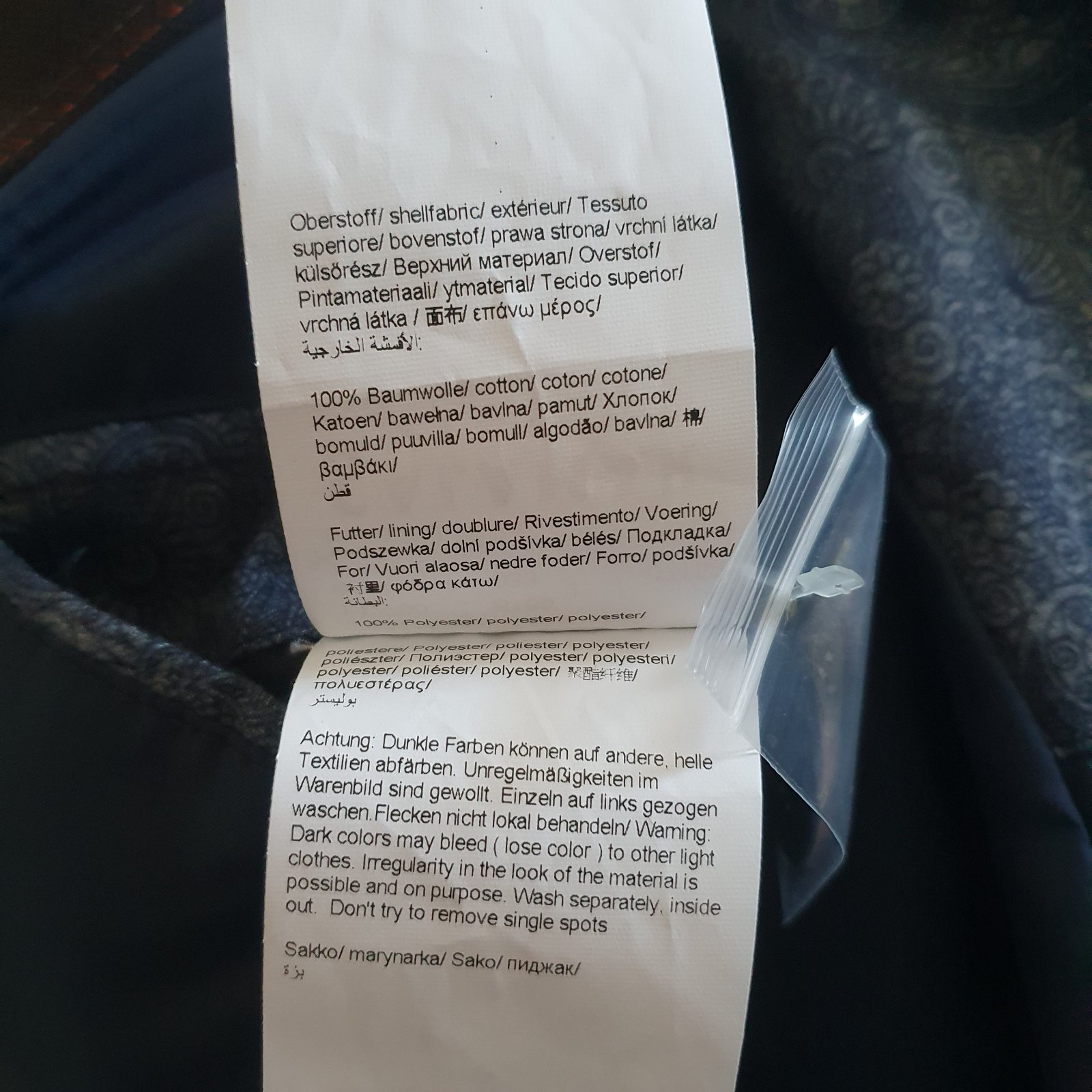 1x použité, ako nové kvalitné sako. Materiál bavlna. Rozmery na foto, pôvodná cena 120 Eur. Cena je bez pošty.