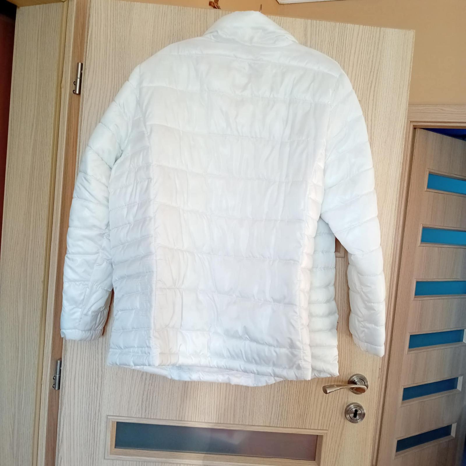 málo nosená bunda s odnimatelnou kapucnou, cez prsia do 125cm, dlžka77cm