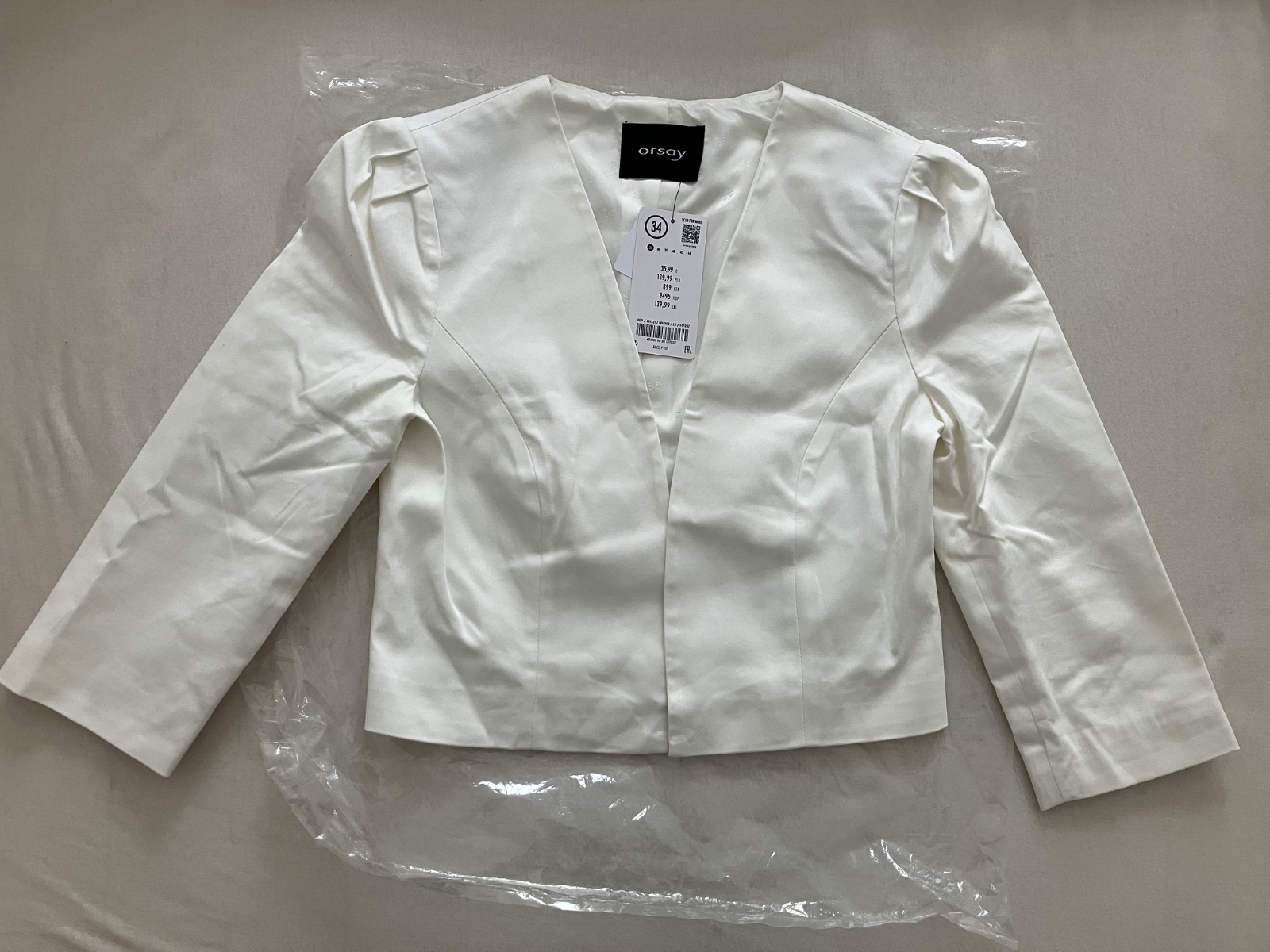 Novy kratky blazer/sako s 3/4 rukavom, s visackou, nepouzity.