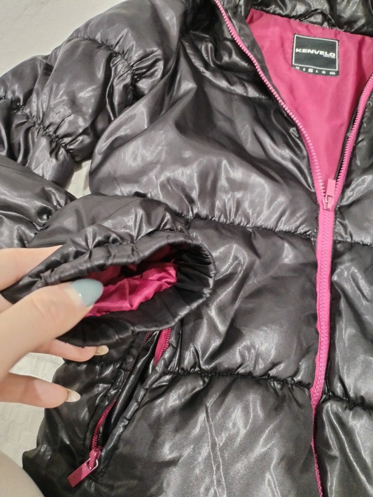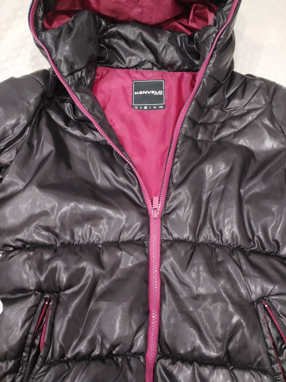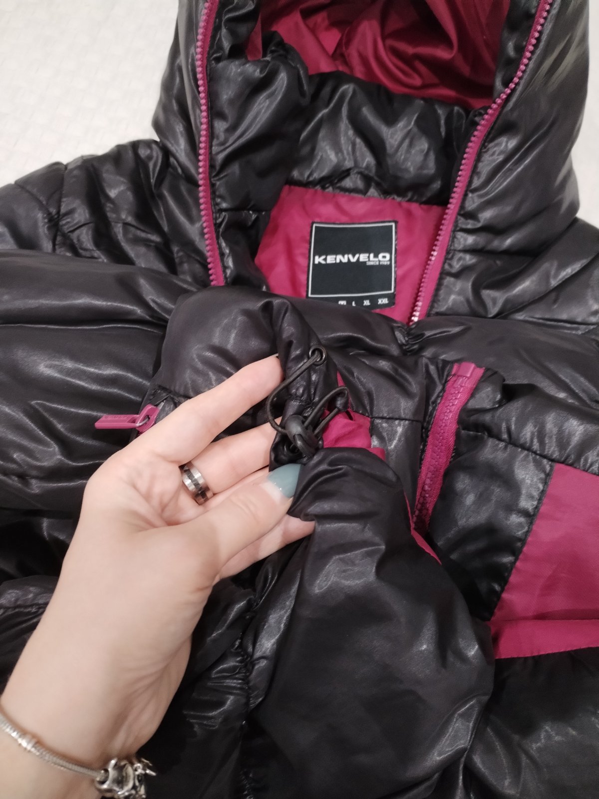 Málo nosena bunda,s pevnou kapucňou, až po samý vrch hlavy, na zips a dolu je možnosť si bundu zúžiť vloženými gumkami. Cena bez pošty 10