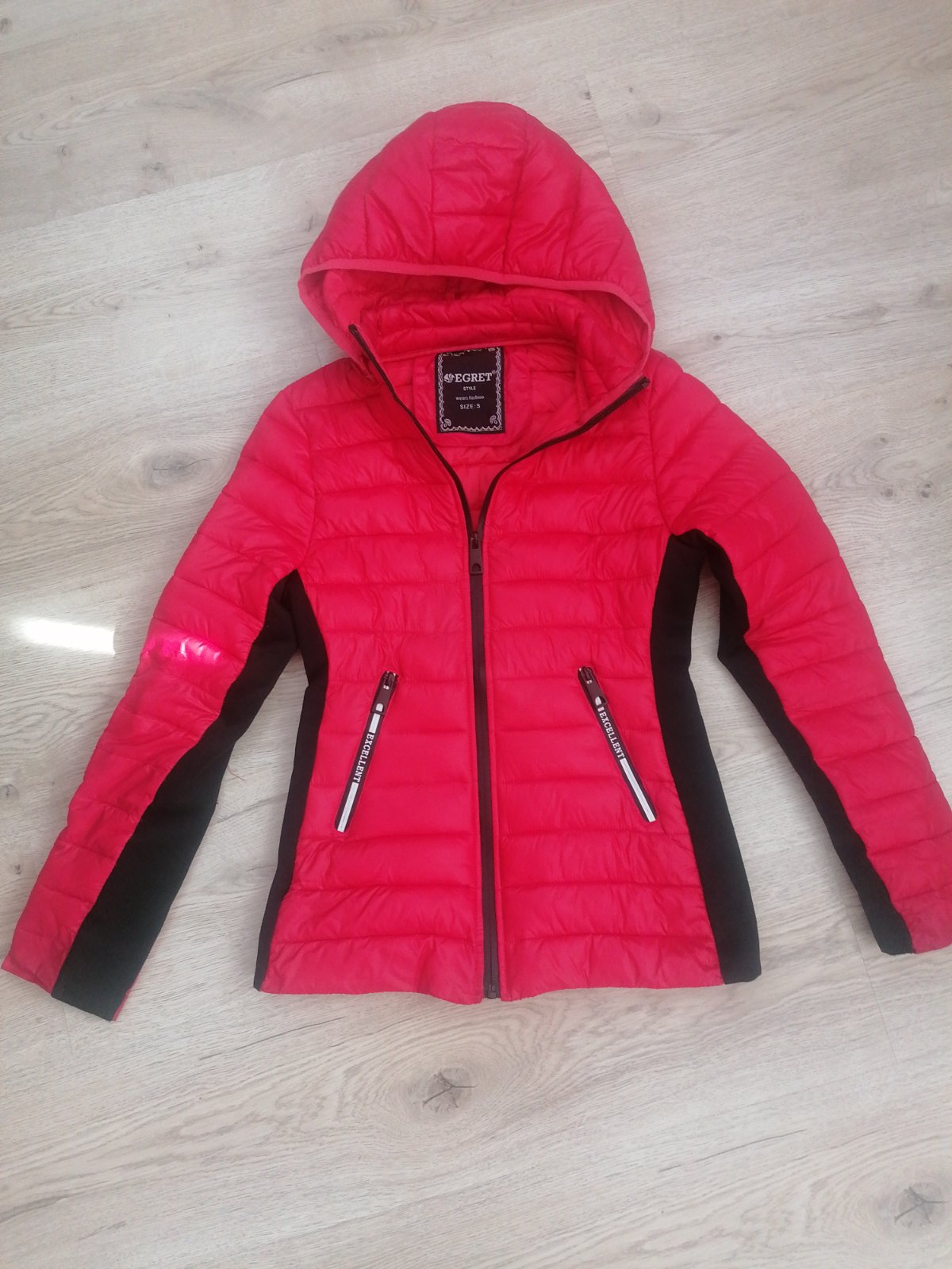 Predám prechodnu bundicku, pár krát nosena na striedačku s inými, bez poškodení, kapucňa sa dá odoonut, veľkosť je uvedená S, ale sedí na veľkosť 152/158
