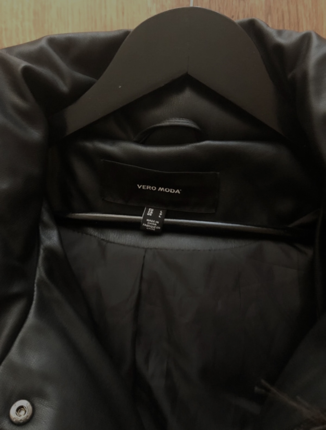 Dlhá kožená zimná bunda značky vero moda. Veľkosť L. Bunde chyba zapínanie na najspodnejšom gombíku čo pri nosení vôbec nevadí, preto ju posuvam za nižšiu sumu. Pôvodná cena 110€