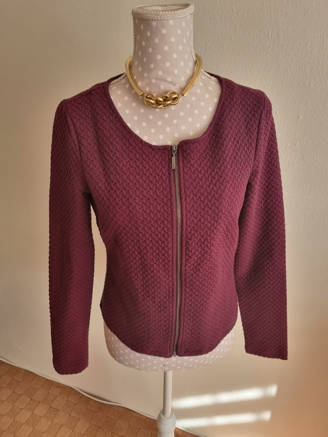 1x oblecene...je mi velke posuvam....cez prsia 48-52x2..matetial strukturovany bavlneny uplet s elastanom..pise M...sedi na 40, dlžka 56, rukáv od krku 70