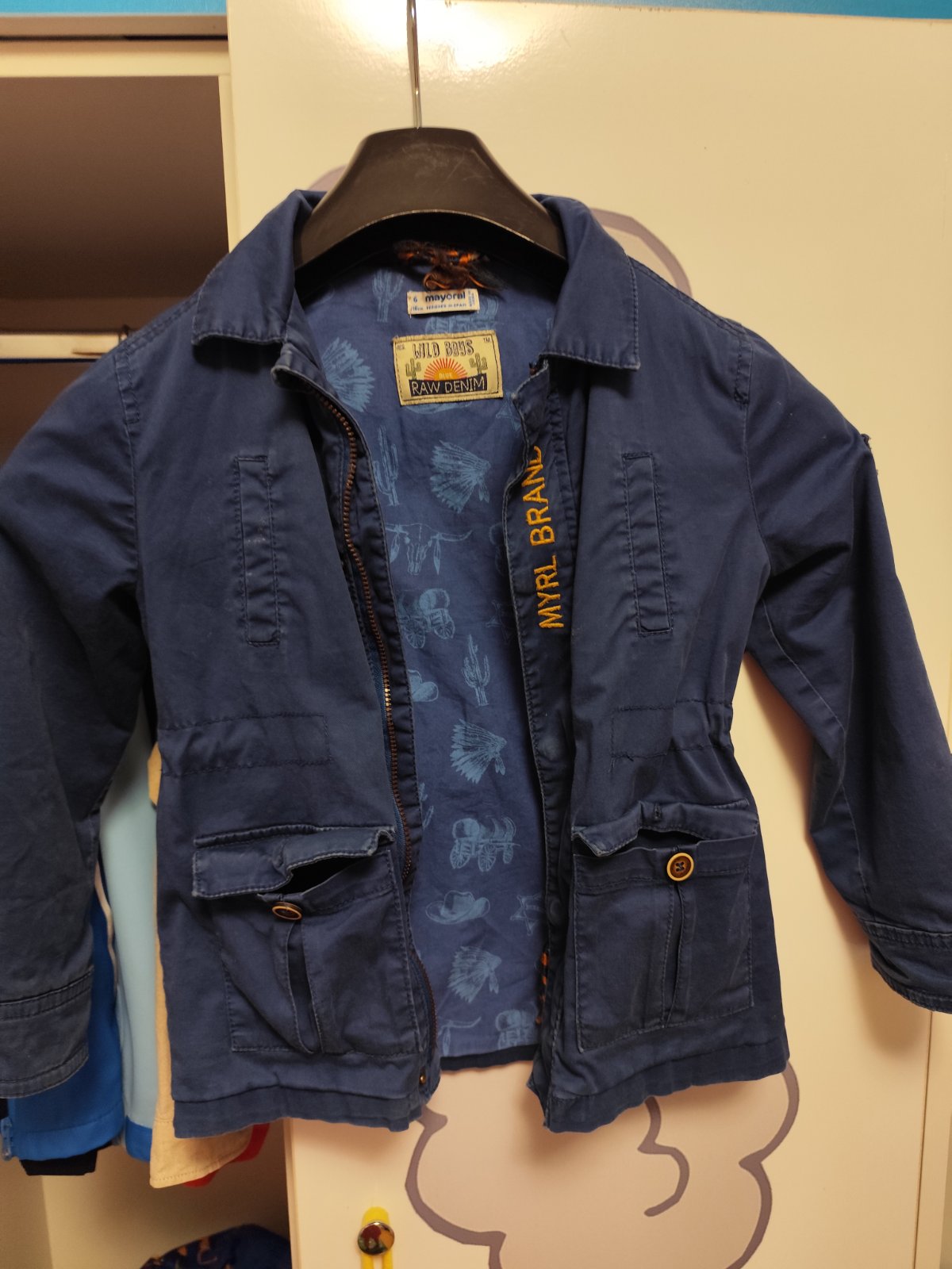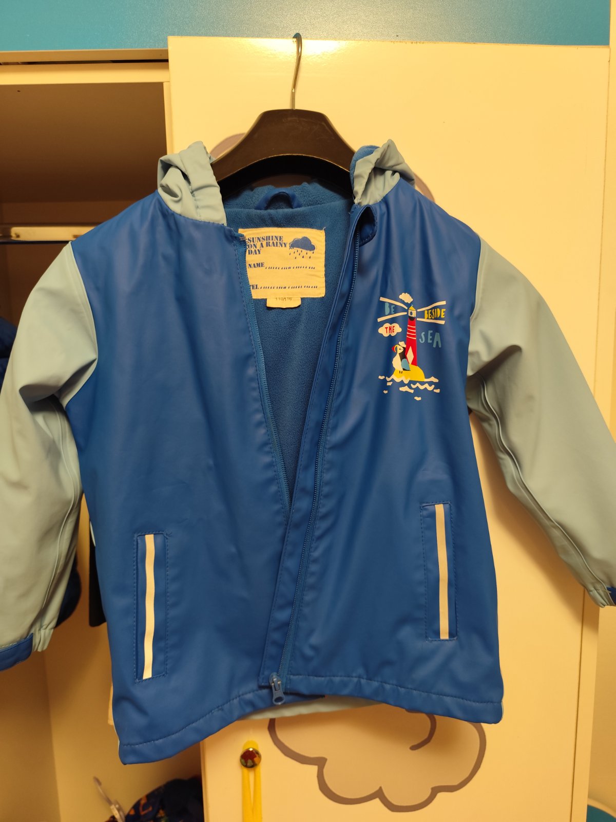 Kapucňa je odopínateľná. Veľkosť je 110-116. Vo veľmi dobrom stave len na vnútornej strane rukáva je menší fliačik od žehličky.