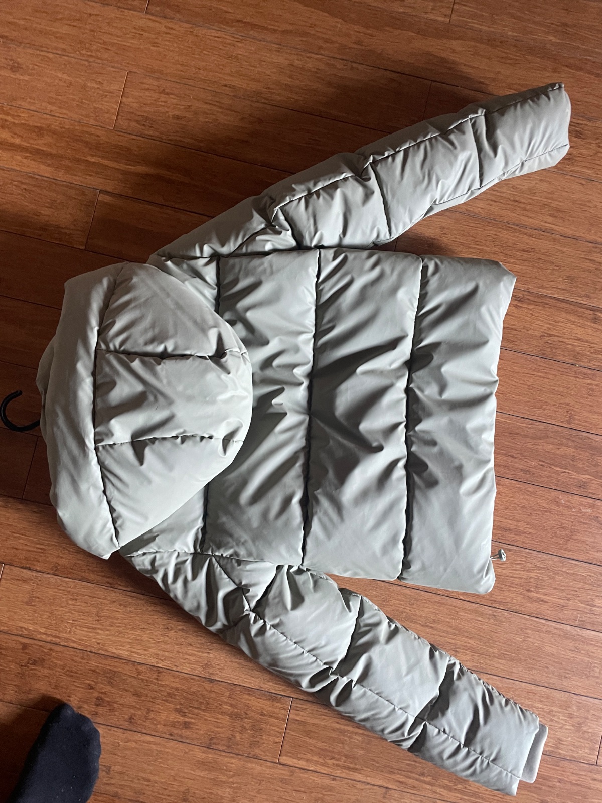 Vnutri je teplá kožušinka ktorá sa dá odopnúť,takže ju môžte potom nosiť aj ako prechodnú.Farba je ako na poslednej fotke,bez poškodení,krásna.