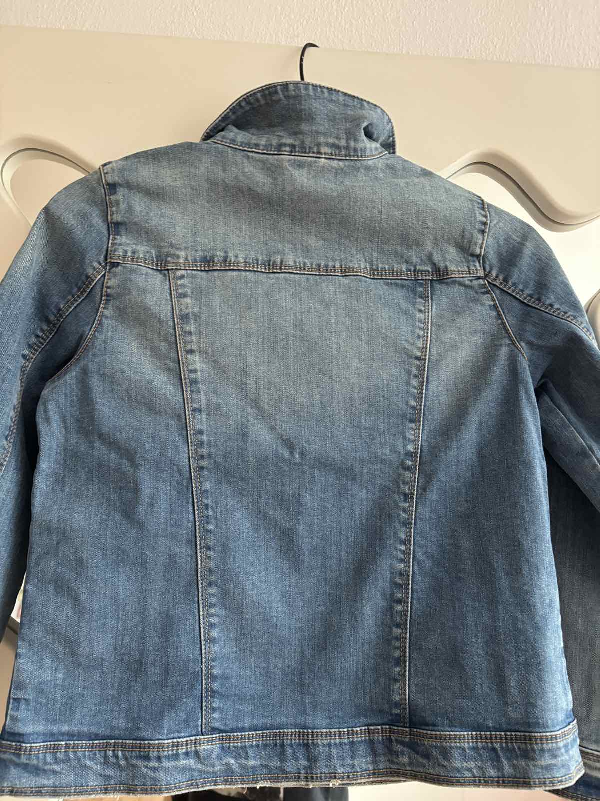 Bez známok nosenia, pružná riflovina, veľkosť 11-12 rokov, šírka pod pazuchami 43 cm, dĺžka 50 cm, rukáv od krku 62.5 cm