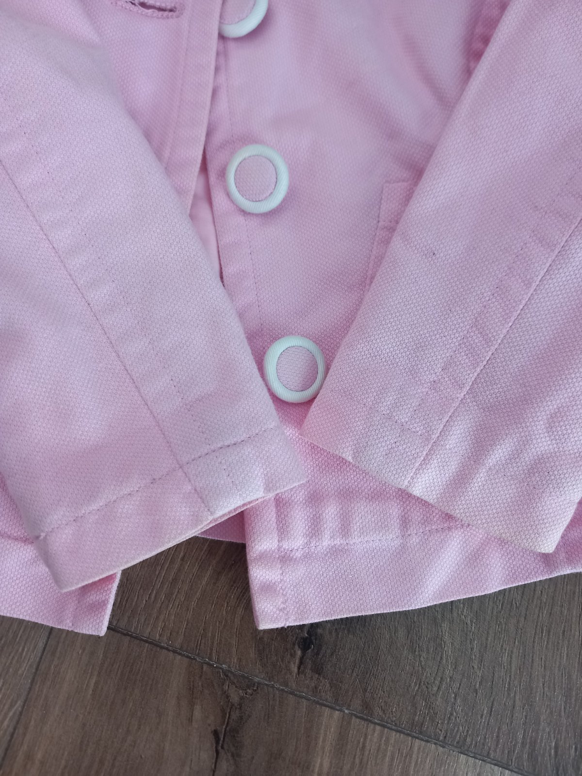 Krasny kabatik na prechodne pocasie - podfutrovany, s kapucnou. Mierne predlzeny strih, vyborne sedi lebo je strihnuty v pase. Ma krasne vysite aplikacie -kvietky, motyliky. Farba je staroruzova, m...