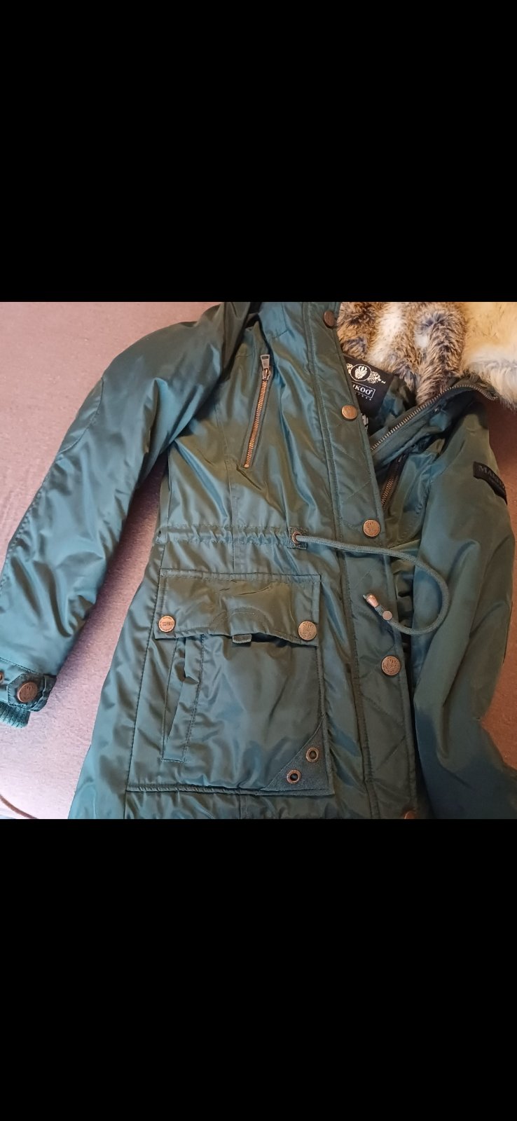 Ponúkam teplú bundu na zimu vo veľmi dobrom stave, málo nosenú. S odnímateľnou kapucňou.