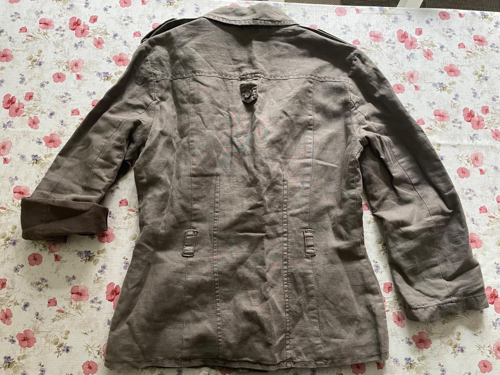 Krásny kabátik na leto. Má väčší výstrih tak pri ňom znosite aj rôzne šatky. Môžete nosiť s opaskom i bez. Je v top stave, má dve vrecká. Dĺžka 54cm Cez prsia 86cm Pás 70cm Rukáv od krku 68cm