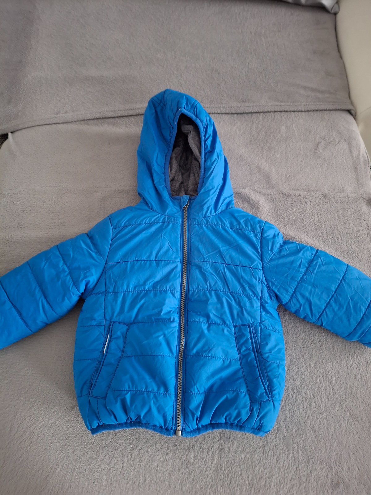 Šikovná kvalitná vetrovka pre malého drobca. Naš chlapček vynosil dva zimy.... Odporúčam. Veľkostne sedí. Bez poškodení.