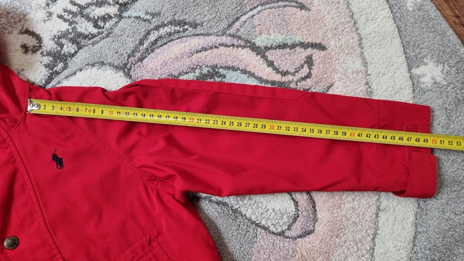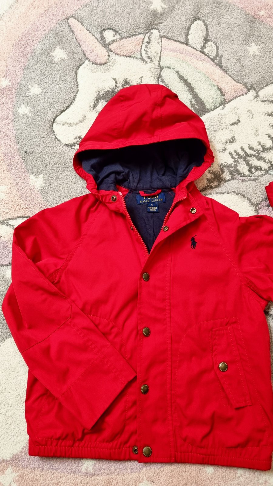Výborný stav, jemne na podšívke vidno nosenie. Pekná sýta červená, tmavšia, tehlovejšia, než na foto. Podšitá bavlnou. Veľkosť 6r, syn mal tak zarovno 116/122.