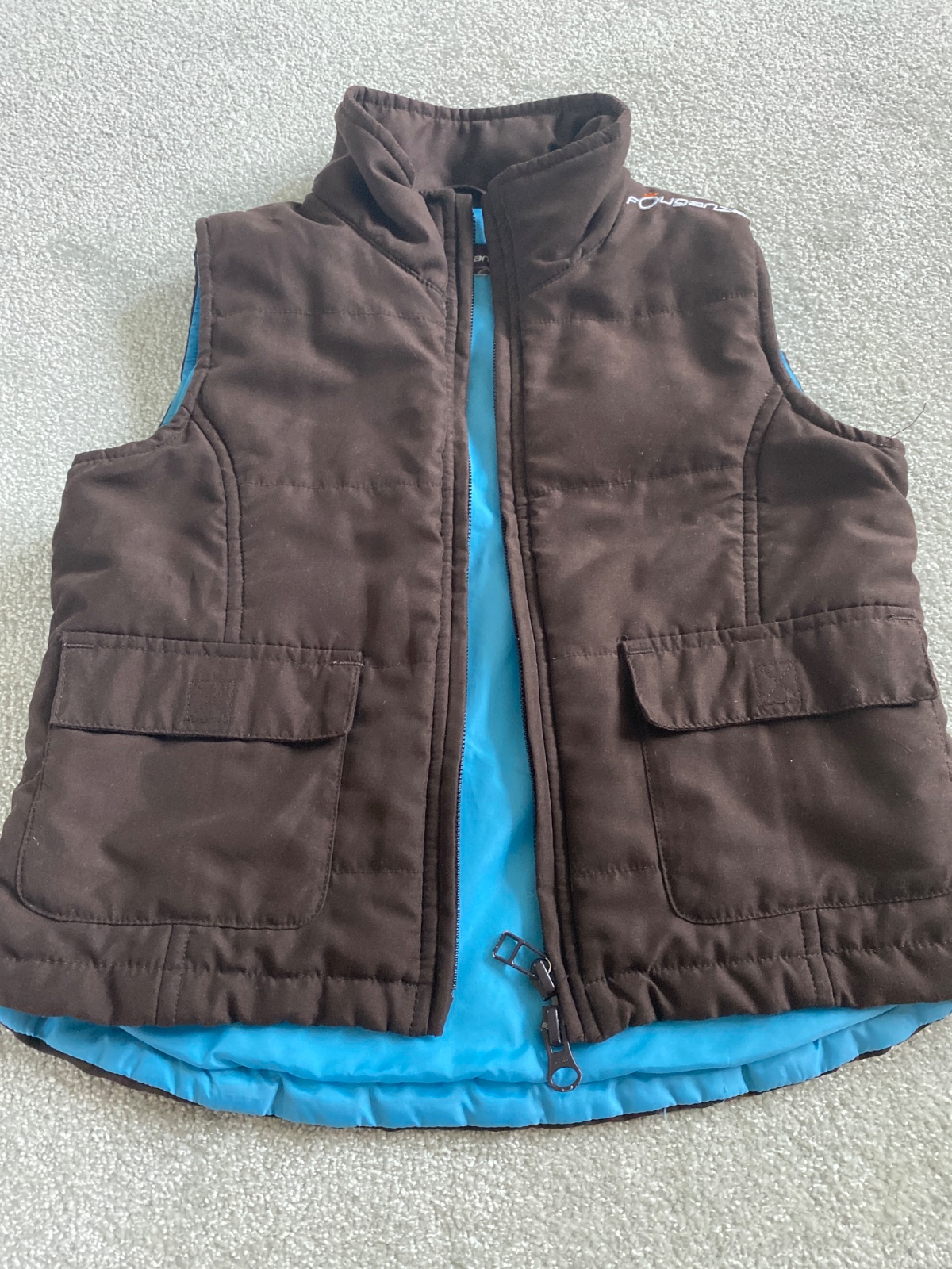Veľmi pekná, praktická vesta pre chlapca, tmavohnedá, zvnútra kožušinka rovnako tmavohnedej farby. 2 vrecká naboku, ozdobné zipsy. Bola iba párkrát oblečená, vyzerá akonová. CENA: 8e