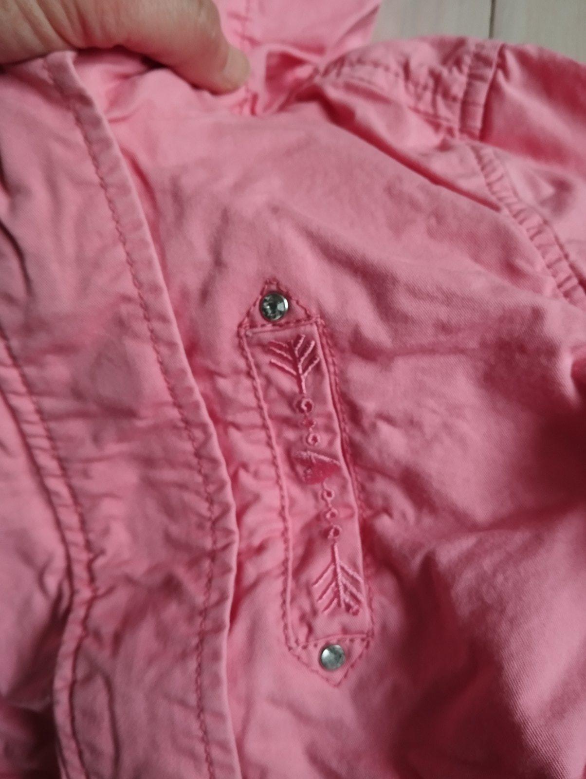 Podarená bundička bez podšívky, niečo ako riflovka, bez poškodenia, pekné detaily a vypracovanie, 100% bavlna. Dĺžka od pleca 45, rukáv od krku 39, šírka cez hruď 33cm. Váha do 300g.