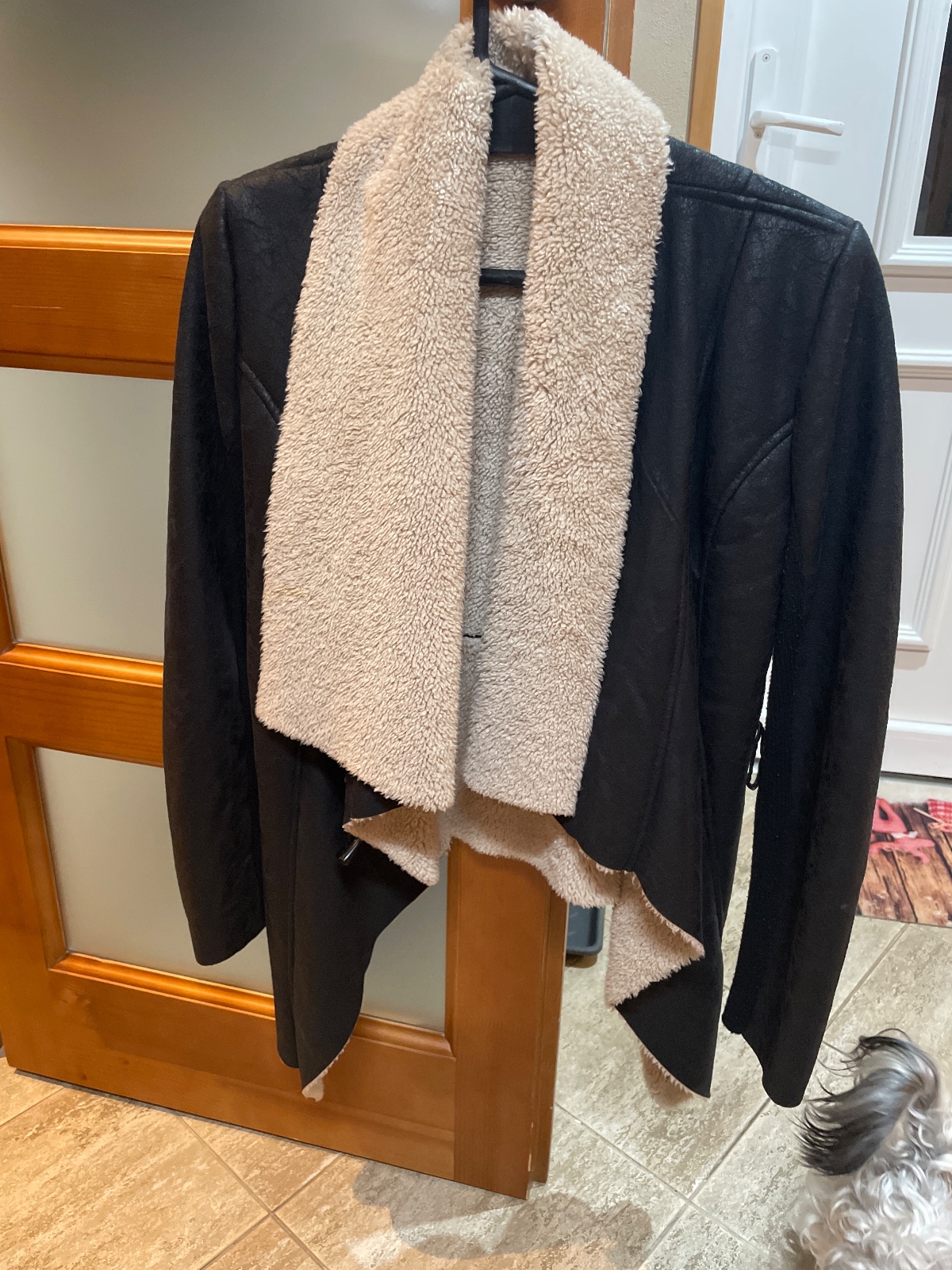 Teplákové sako veľkosť udaná S, ale je väčšie. Miera cez prsia udaná na fotke. Nevyblednuté.