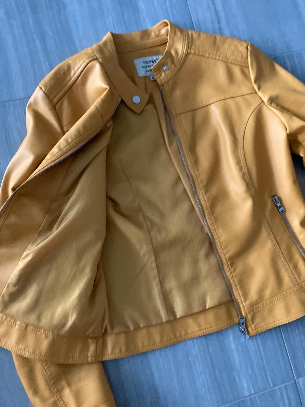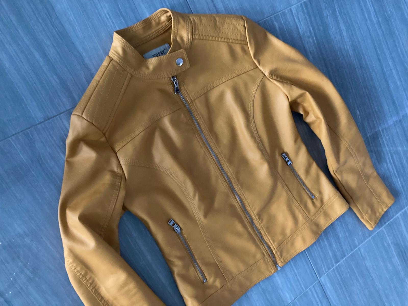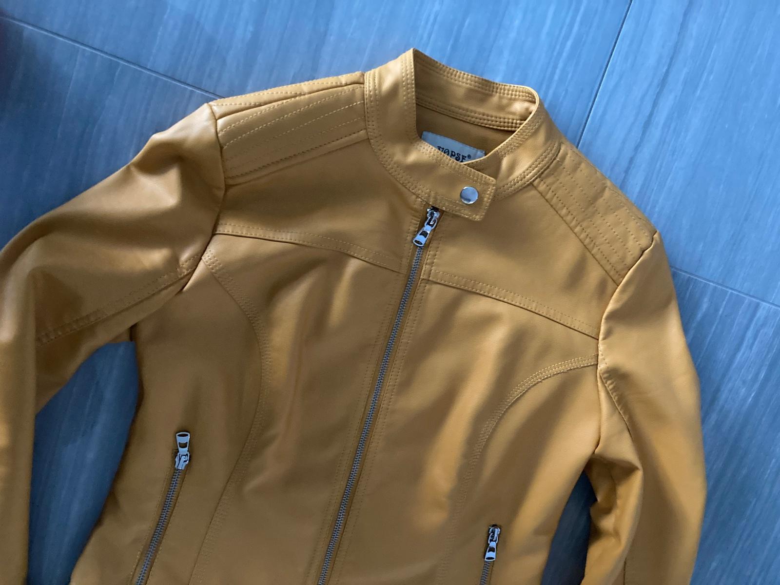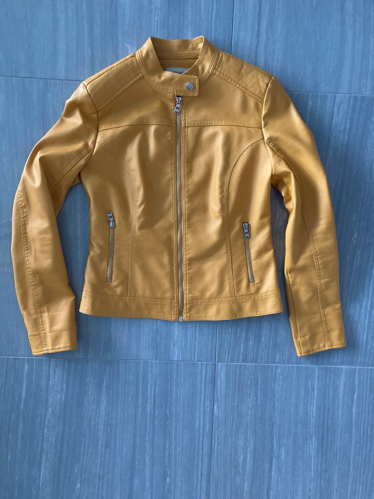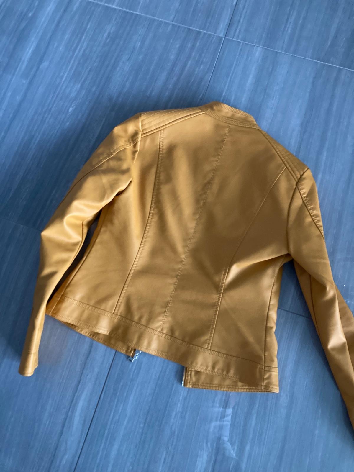 Koženková bunda, moderná horčicová farba, funkčné vrecká. Šírka pod pazuchami 45cm, zadná dĺžka 54cm. Slim fit, v páse pekne tvarovaná. Bez poškodení, asi som ju ani nemala oblečenú.
