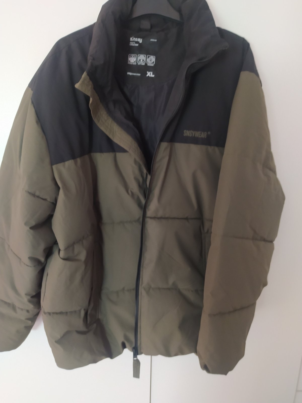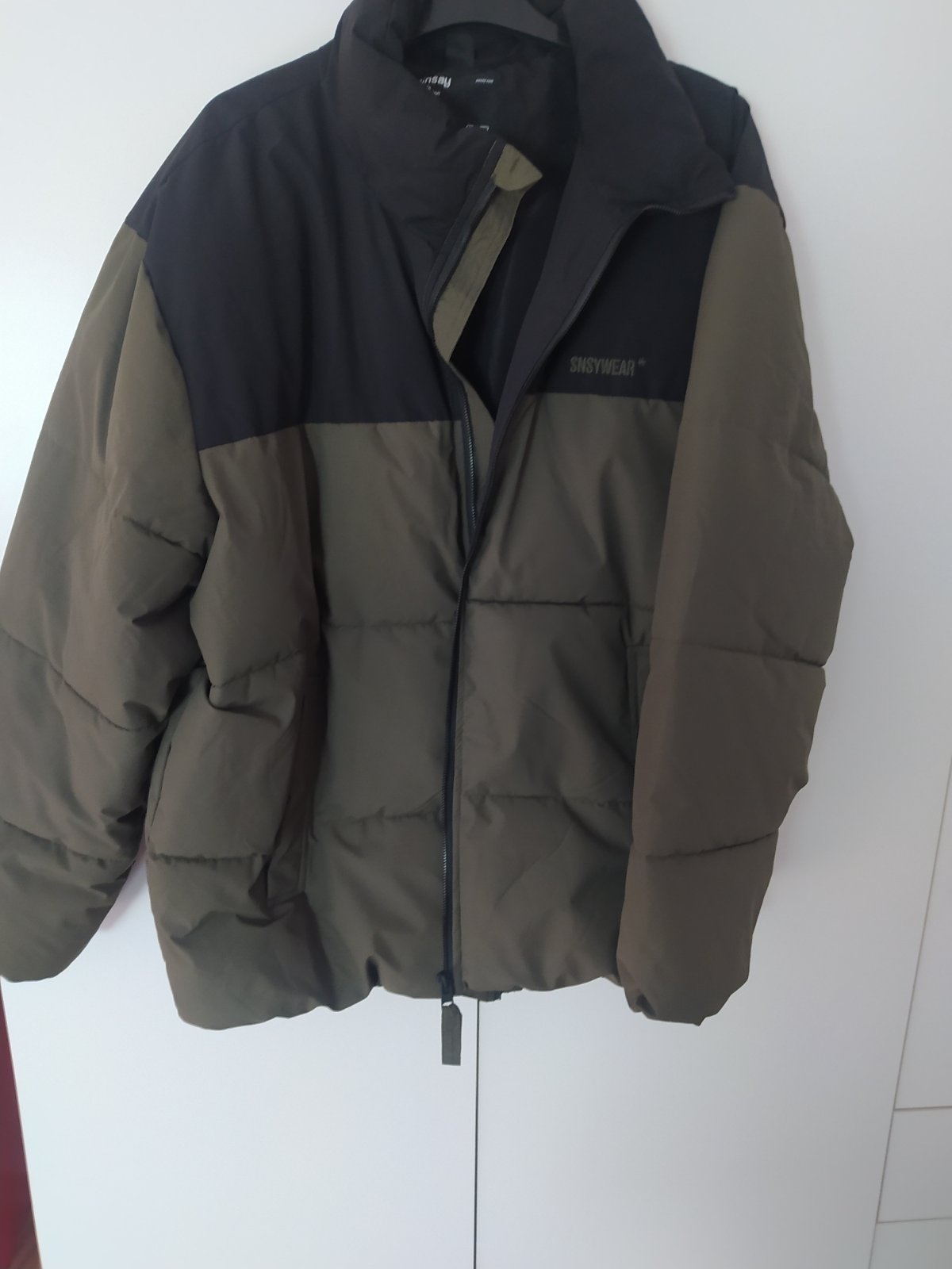 1x oblecena bunda vo vojenskej zelenej farbe, kombinovaná s oranžovou. Je veľmi tepla, ale nie je ťažká. Je detailne prepracovaná. Vo vnútri je šnúrka na stiahnutie, vrecko a na rukávoch a spodku b...