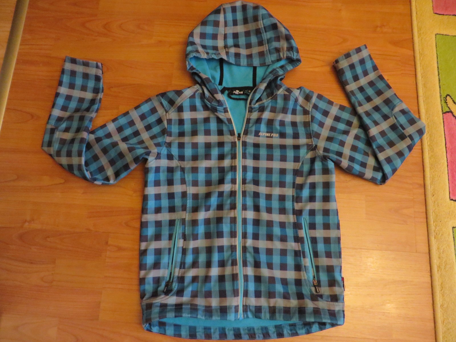 Predám nosenú softshellovú bundu, modrotyrkysovej farby. Tie farby sú krajšie naživo, fotka bola robená podvečer. Značka ALPINE PRO, veľkosť 152/158. Rukávy majú patent - suchý zips na utiahnutie, na spodku bundy je tiež gumka na utiahnutie proti podfukávaniu. Zo zadnej strany rukávov sú reflexné prvky, taký "reflexný pásik", a logo "A", je to odfotené.