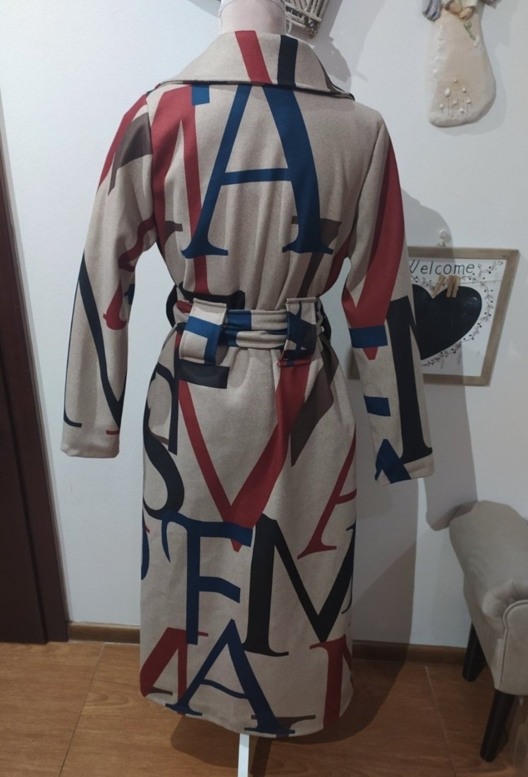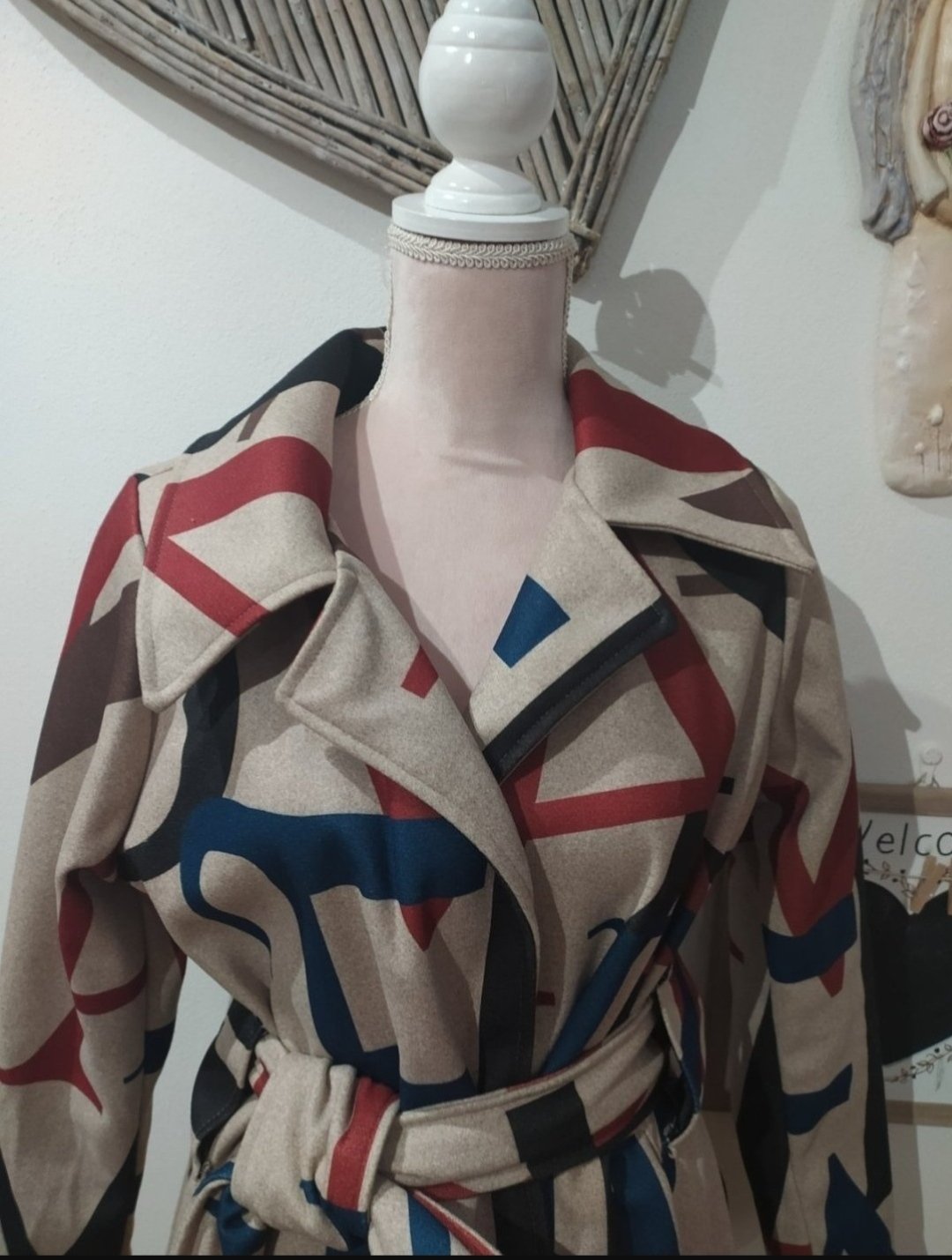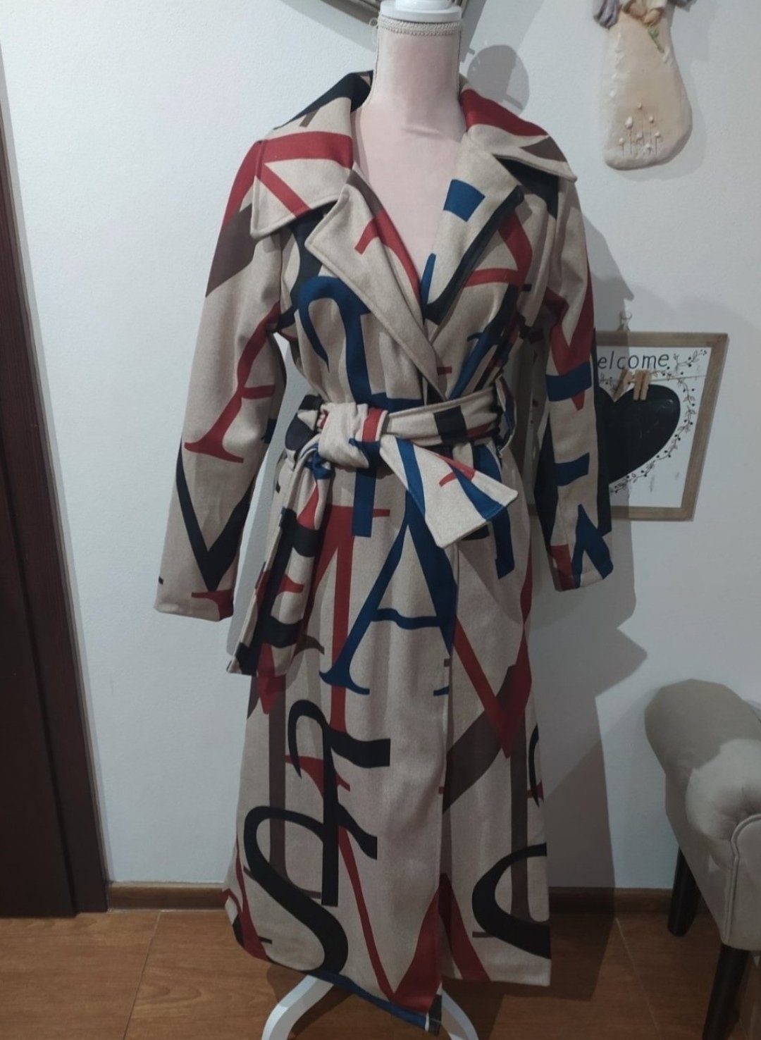 Krásny kabát ,vhodný na prechodné obdobie.Kabat je bez zapínania iba na opasok.