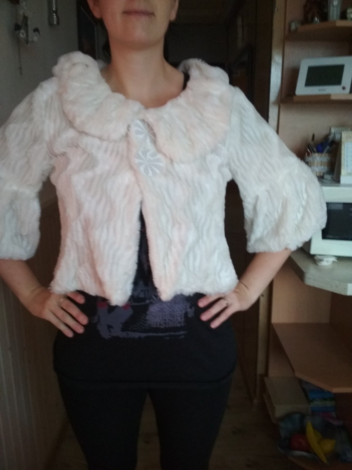 Krásne letné sako s podšívkou,rukávy nariasené 3/4,sako má jemný prúžok,zdobené kvetmi.Vel Uni vhodné pre veľ S-L Dl 71cm, 467,v