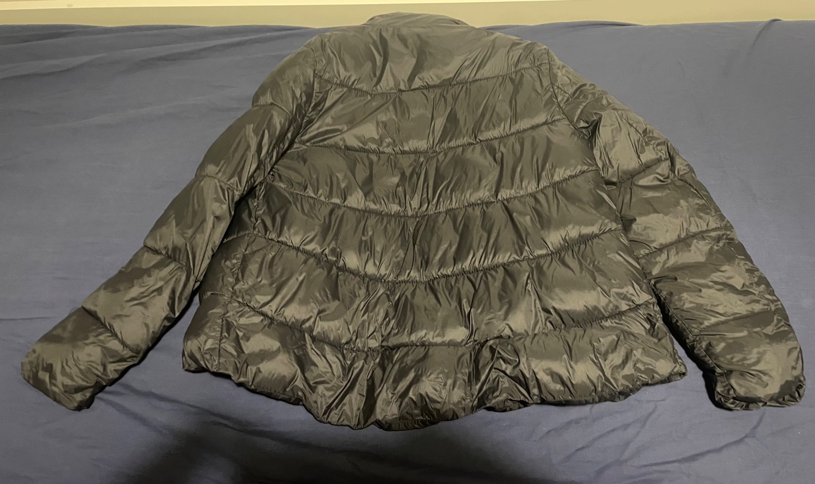 Obojstranná dlhá bunda. Z jednej strany čierna z druhej strieborná. Obojstranný zips, vrecká z obidvoch strán. Rukávy ukončené do úpletov. Kapuca úpletová. XS Sedí aj na S-ko aj M-ko. oversize. Výb...