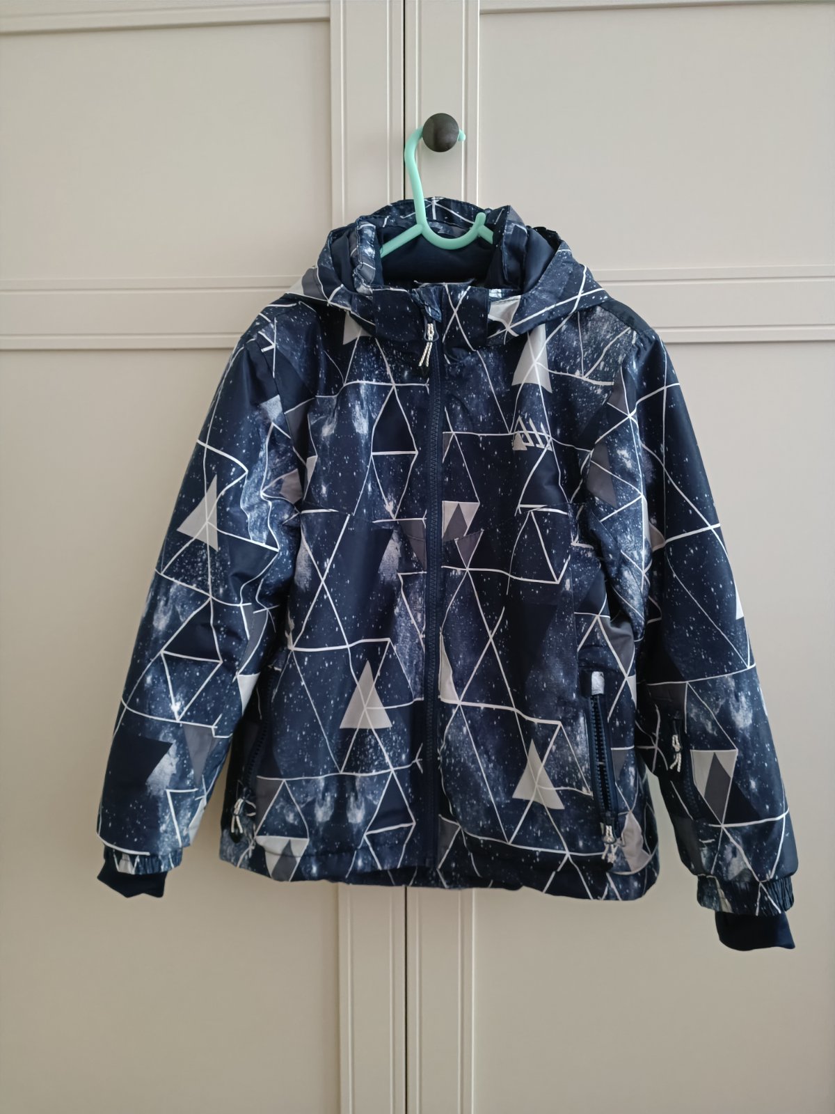 Chlapčenská lyžiarska značková bunda. Zips sa ťažšie zapína. Dĺžka je 50cm, obvod hrudníka je 82cm a obvod pása je 80cm. Dĺžka rukáva je od krku 55cm