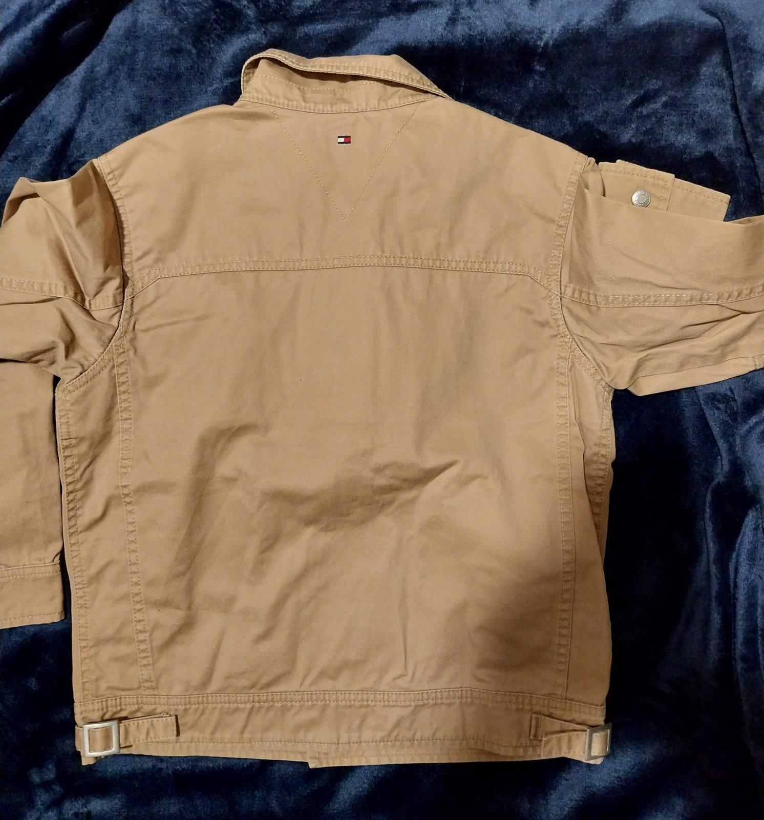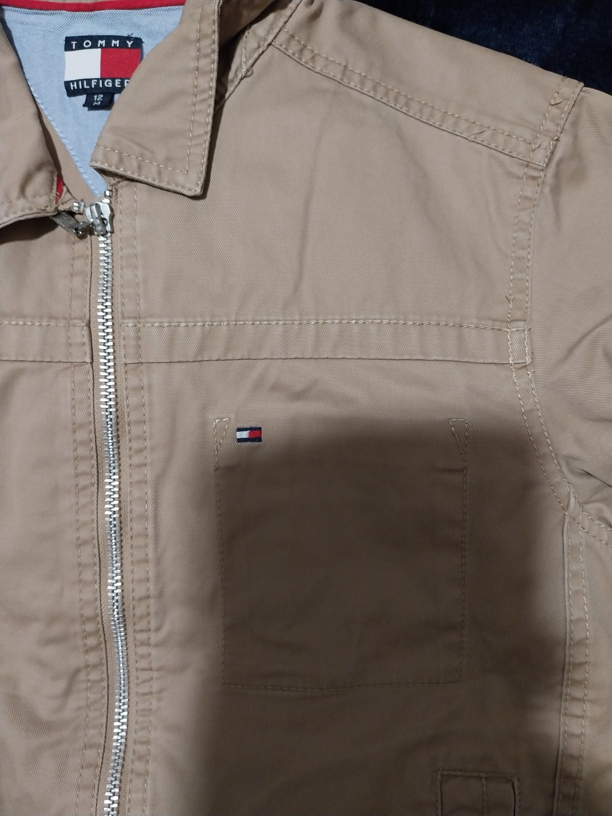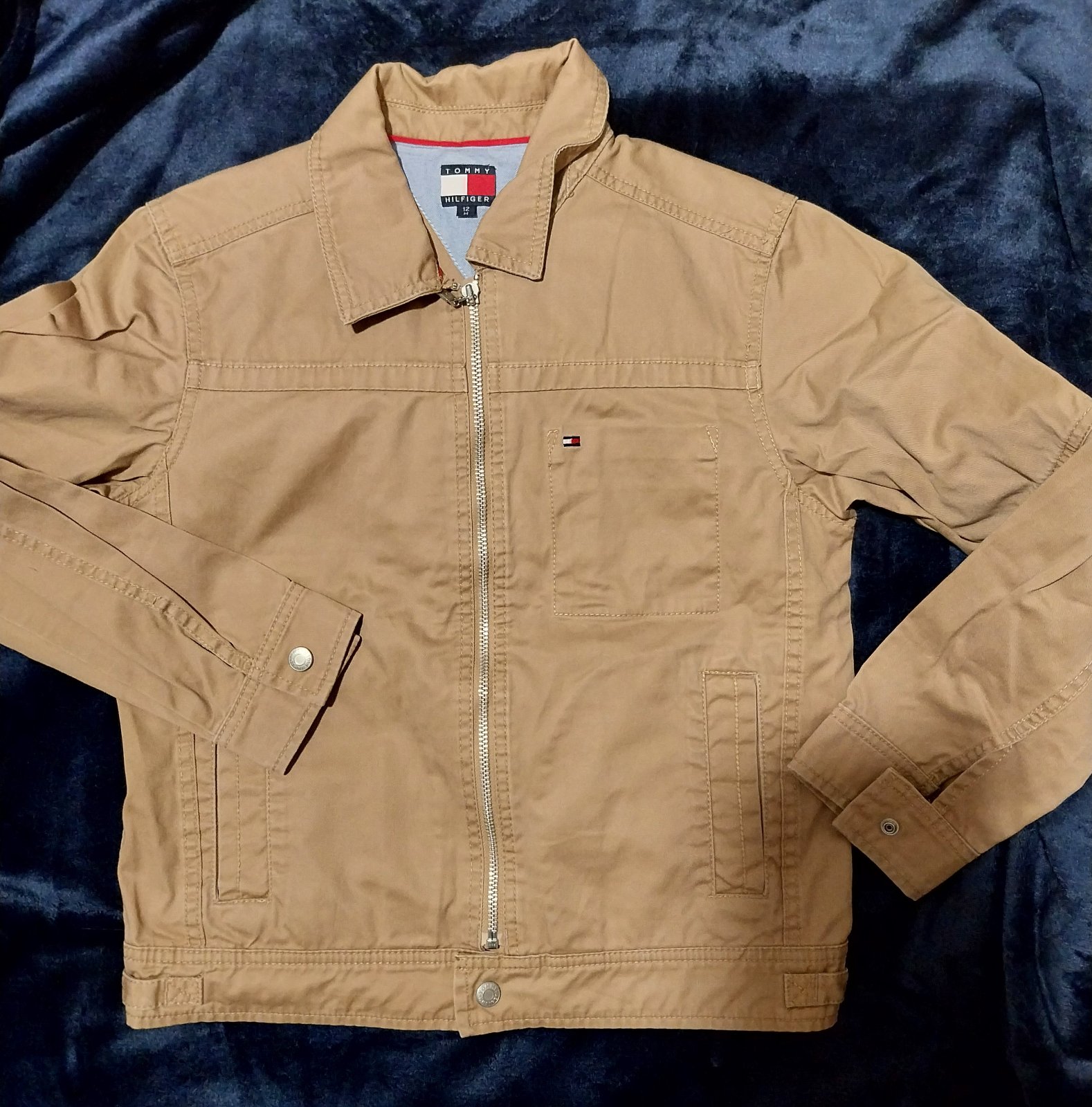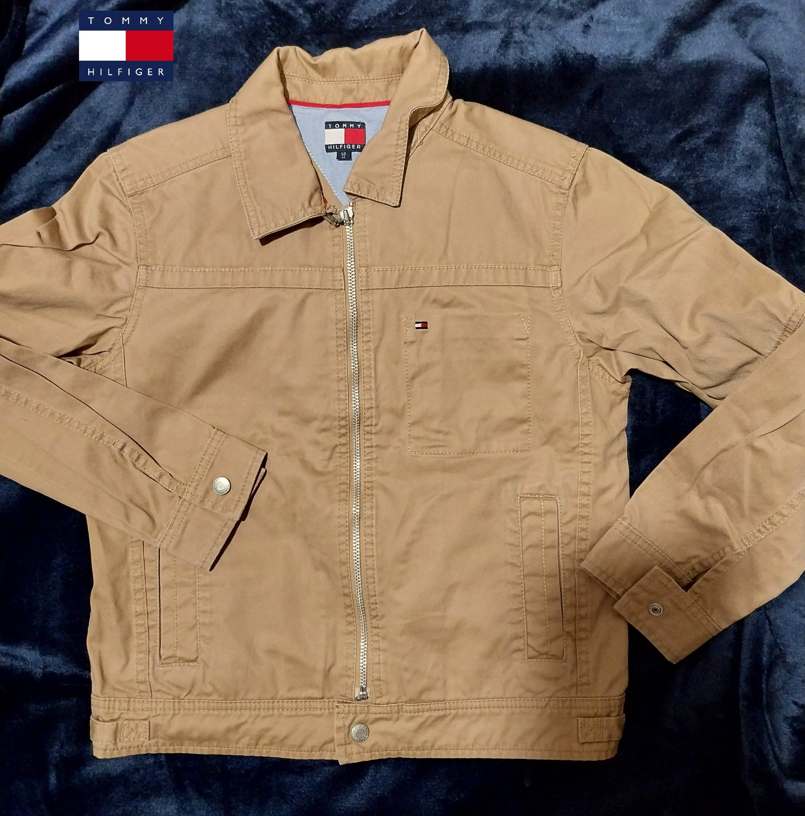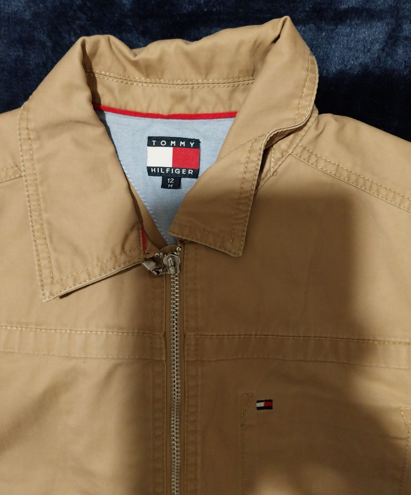 Prechodná bunda pre chlapca zn. Tommy Hilfiger. Stav ako nová, oblečená možno tak 5x, je nám malá :-( inač je špičková. Farba ako na úvodných fotografiách, tie detalne už pôsobia vyblednuto - je to len zle osvetlené. Bunda má krásnu sýtu škoricovo - béžovú farbu a vyšité logá - odfotené. Pôvodna cena bola 69,99€, teraz za zlomok pôvodnej ceny.