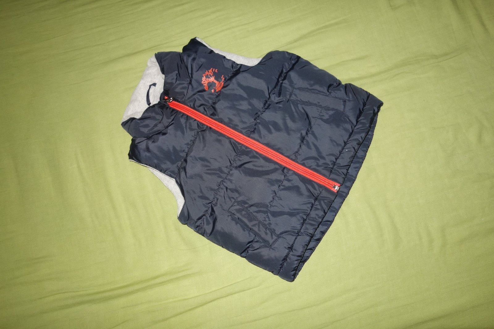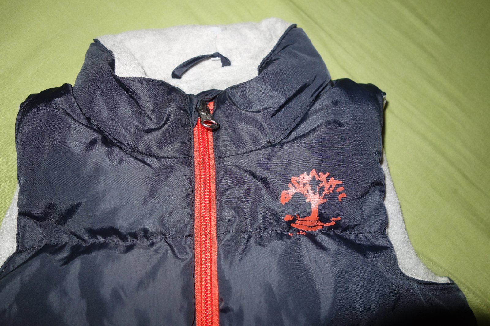 Pekna hruba vesticka v dobrom stave- nazehlovacky sa uz odlupuju. Ma aj kapucnu, ktora je schovana v golieri. Je podsita flisom. Urcena je na velkost 12M/74.