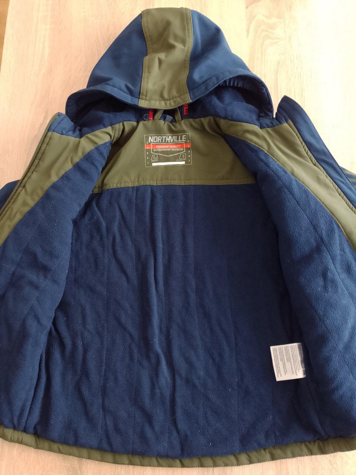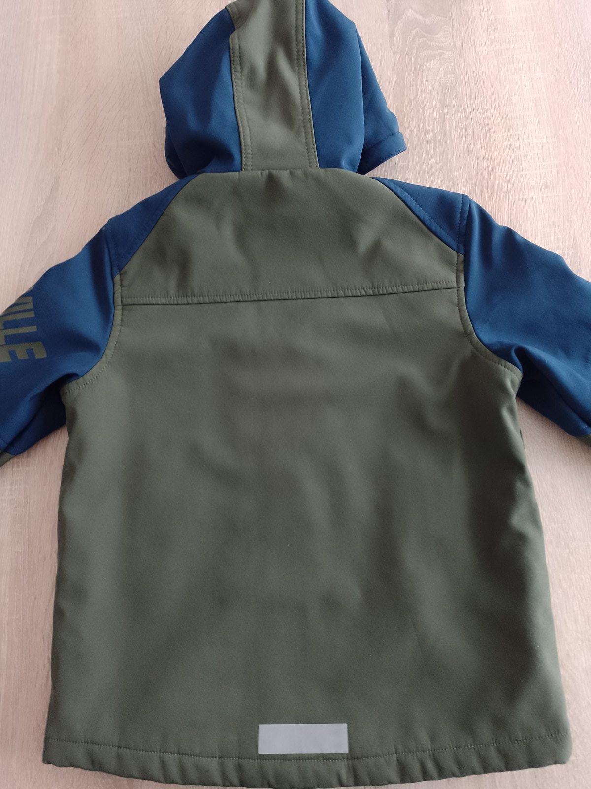 Vodeodolná bunda, akoby jemne pogumovaná. Nie je to pršiplášť ale v miernom daždi niečo vydrží. Ideálna na jeseň, jar ale aj v miernej zime sme nosili. Poškodenia nemá, nosená bola na striedačku. S...