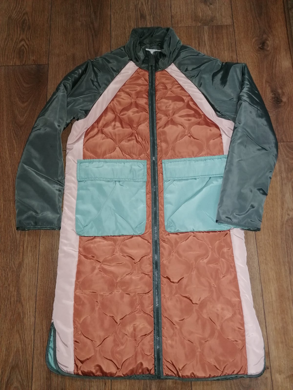 Bunda je takmer nenosená, tenšia, nosili sme v teplejšej zime. Po kolená.