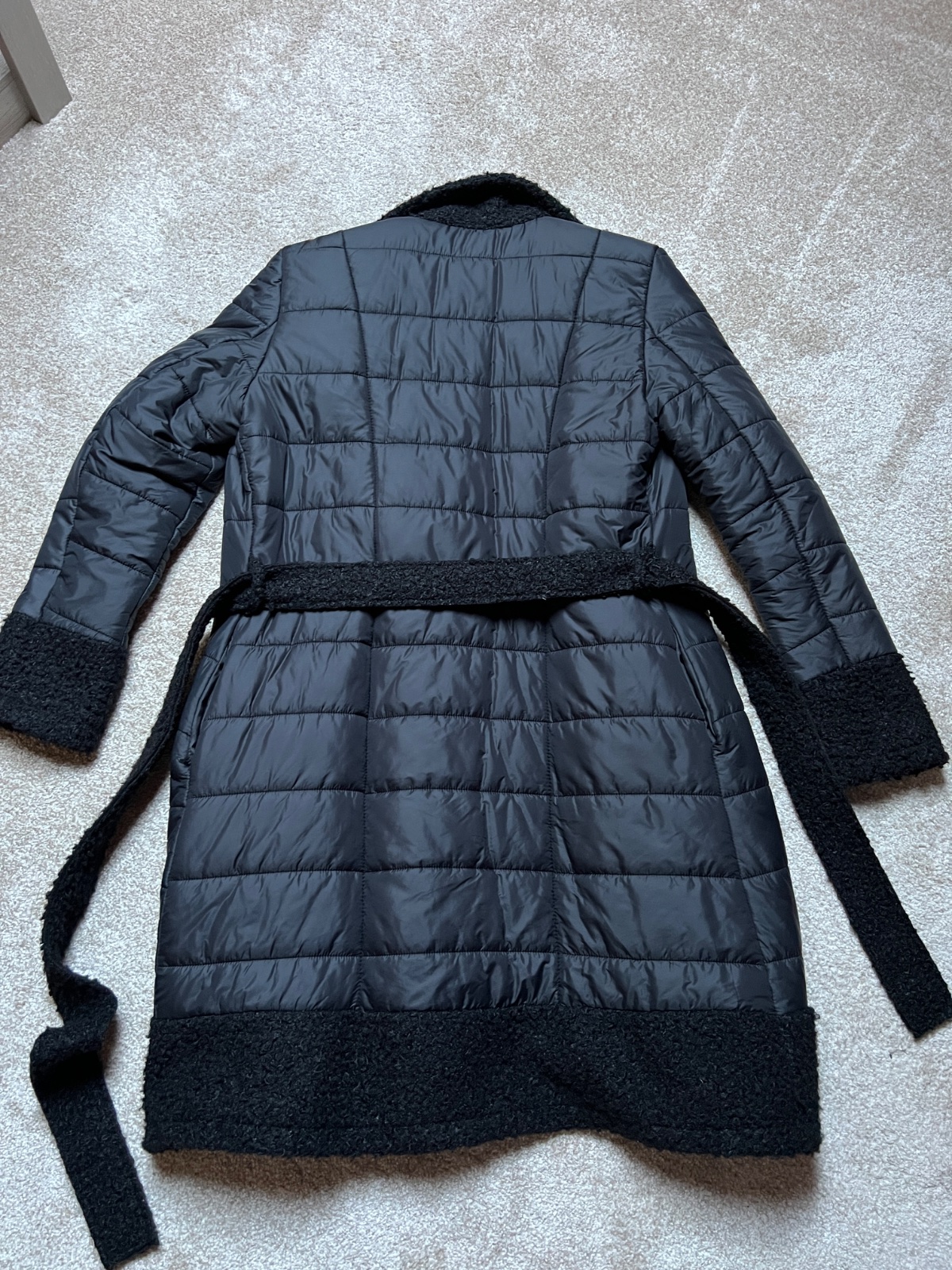 Krasny lahucky presivany kabat, velmi elegantny s opaskom, dvojradove zapinanie