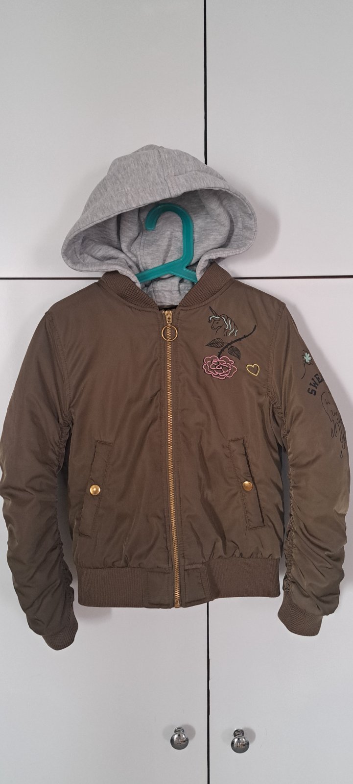 Bez poškodenia. Kapucňa sa dá odopnúť.
