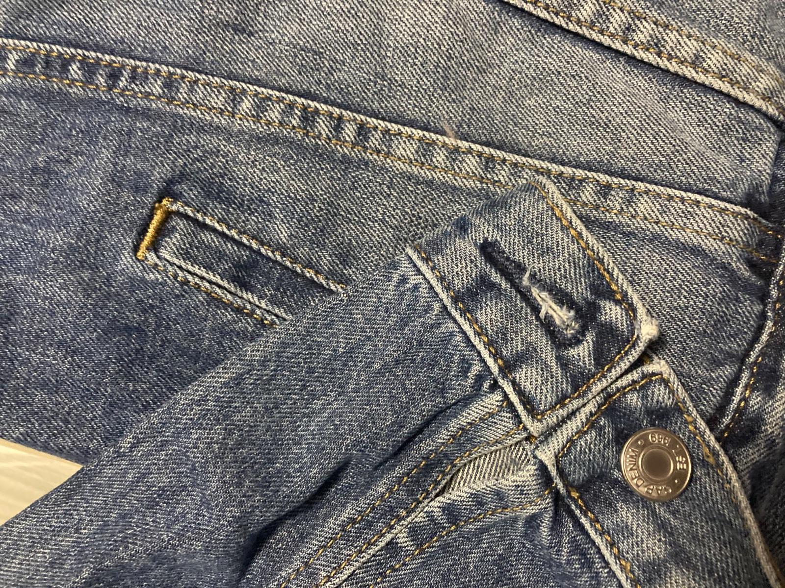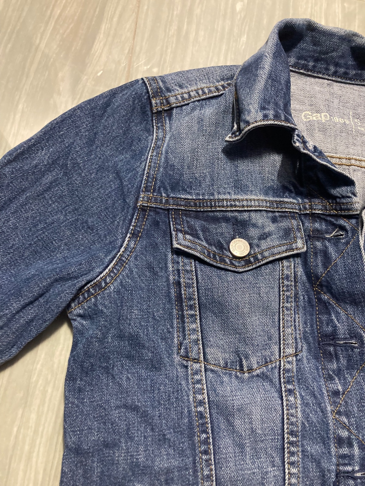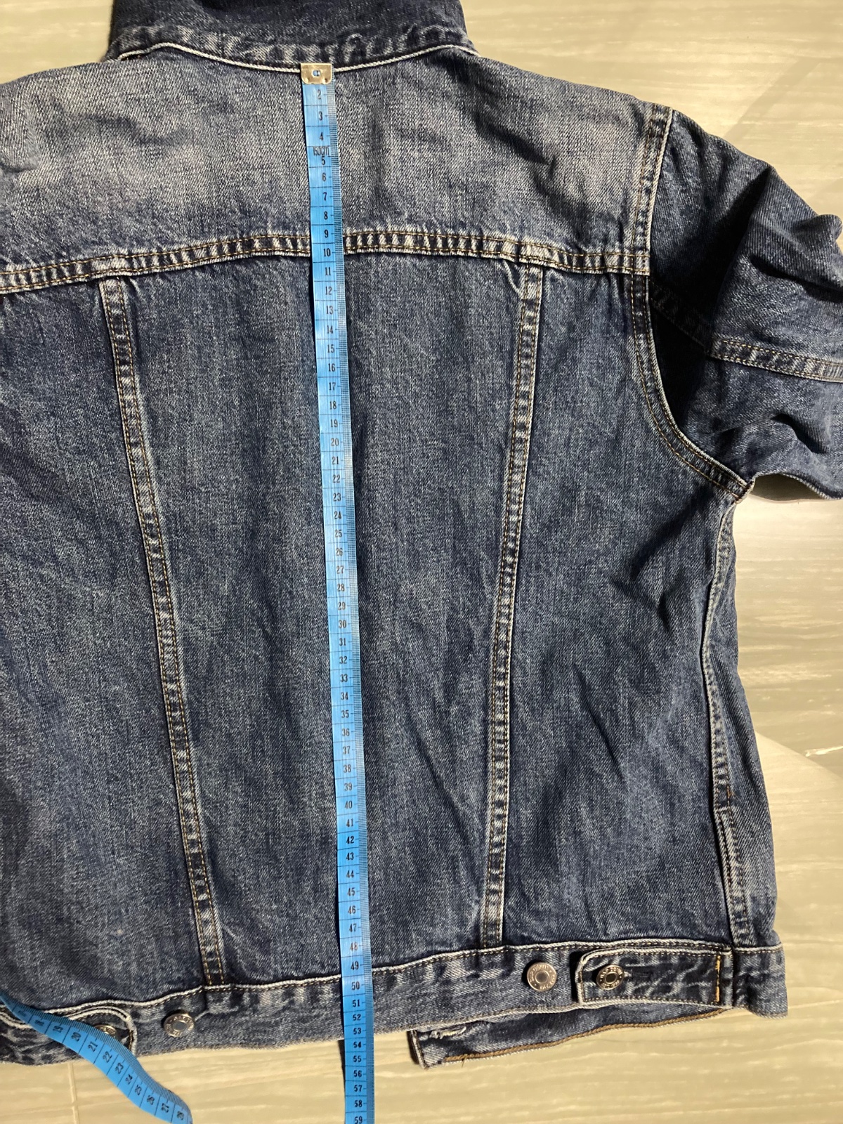 Kvalitná riflovka GAP, veľkosť S, farba ako na prvej foto. Univerzálny kúsok. 100% bavlna. Bez poškodení, nenosila som, je mi úzka cez prsia. Rozmery na foto.