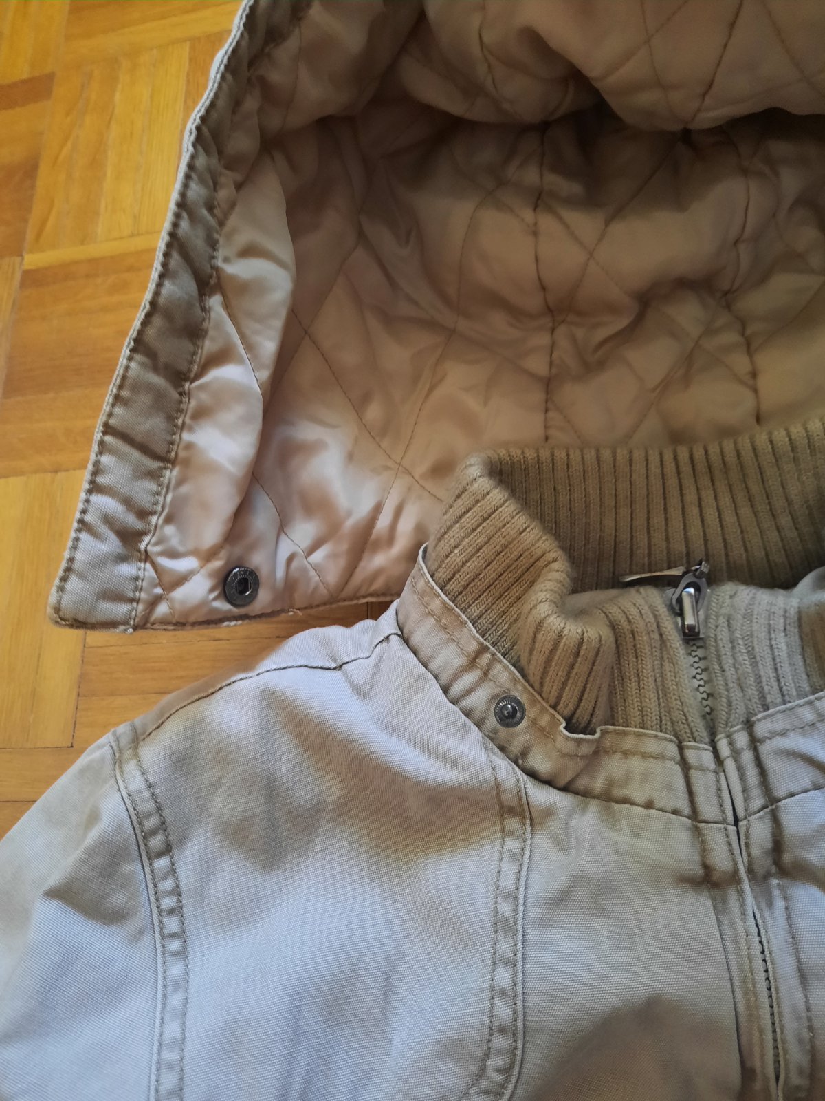 Super dámska bunda s kapucňou, ktorá sa dá aj odopnúť. Zapínanie je na zips. Vpredu sú vačky hore aj dole. Veľkostne sedí aj na XS podla mňa. Je v top stave, ako nová.