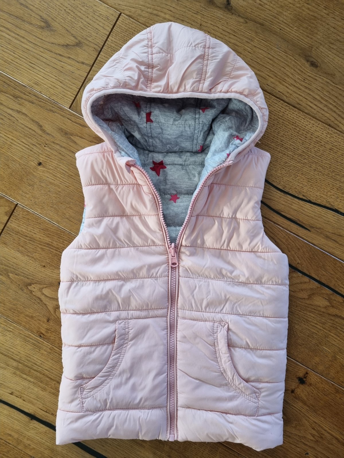 Predám prekrásnu obojstrannú vestičku. Má funkčné vrecká z obidvoch strán. My sme ju nosili len pár krát vo veľkosti 128 a 134. Je v krásnom nosenom stave. Z jednej strany je svetlošedá s jemnými h...