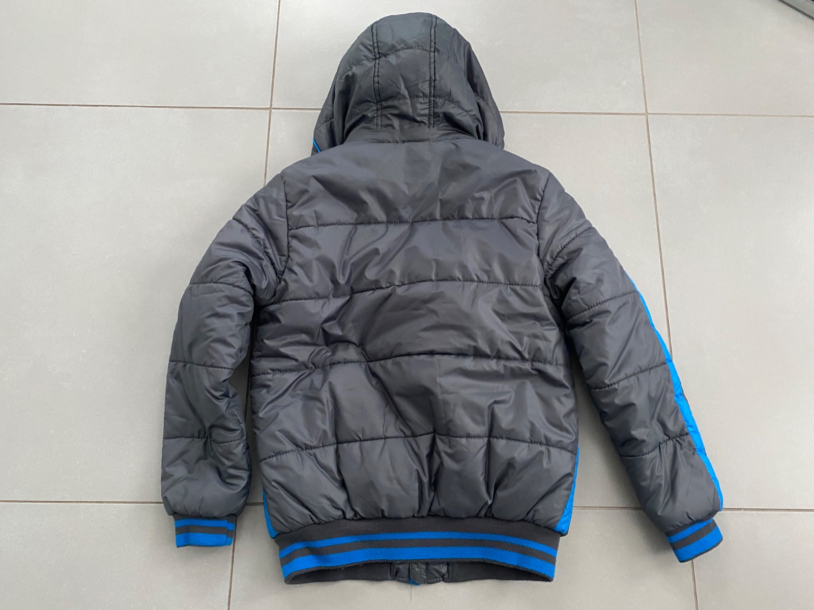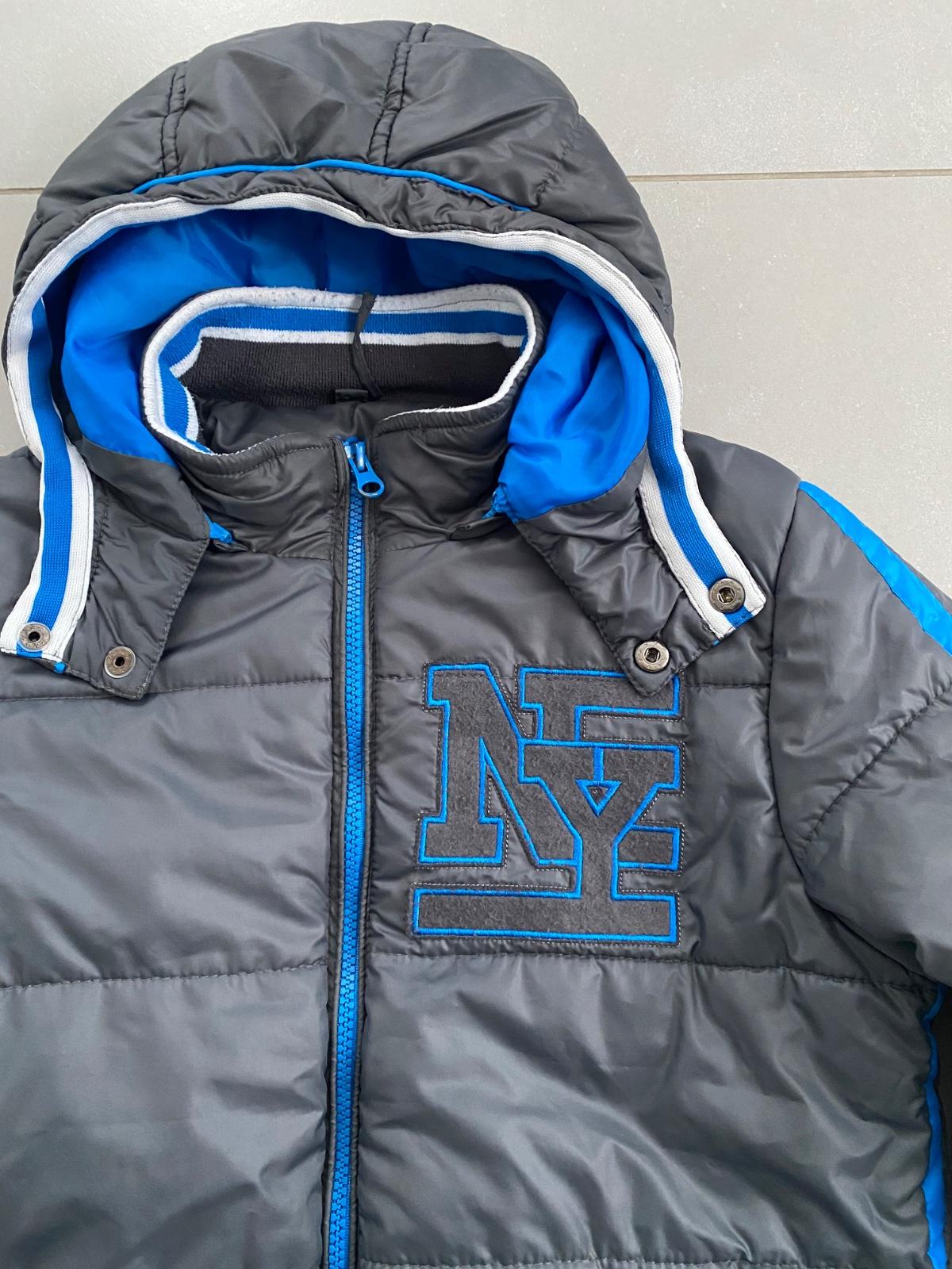Chlapčenská bunda, vo veľmi dobrom nosenom stave, pevná kapucňa, vrecka na bokoch, náprsne vrecko a vrecko na rukáve, veľ. 146/152. Dĺžka: 64 cm Šírka: 52 cm Dĺžka rukáva od goliera: 68 cm cena: ...