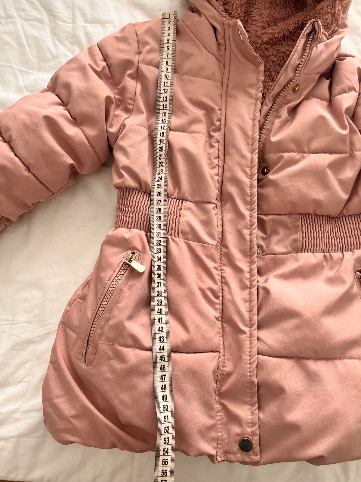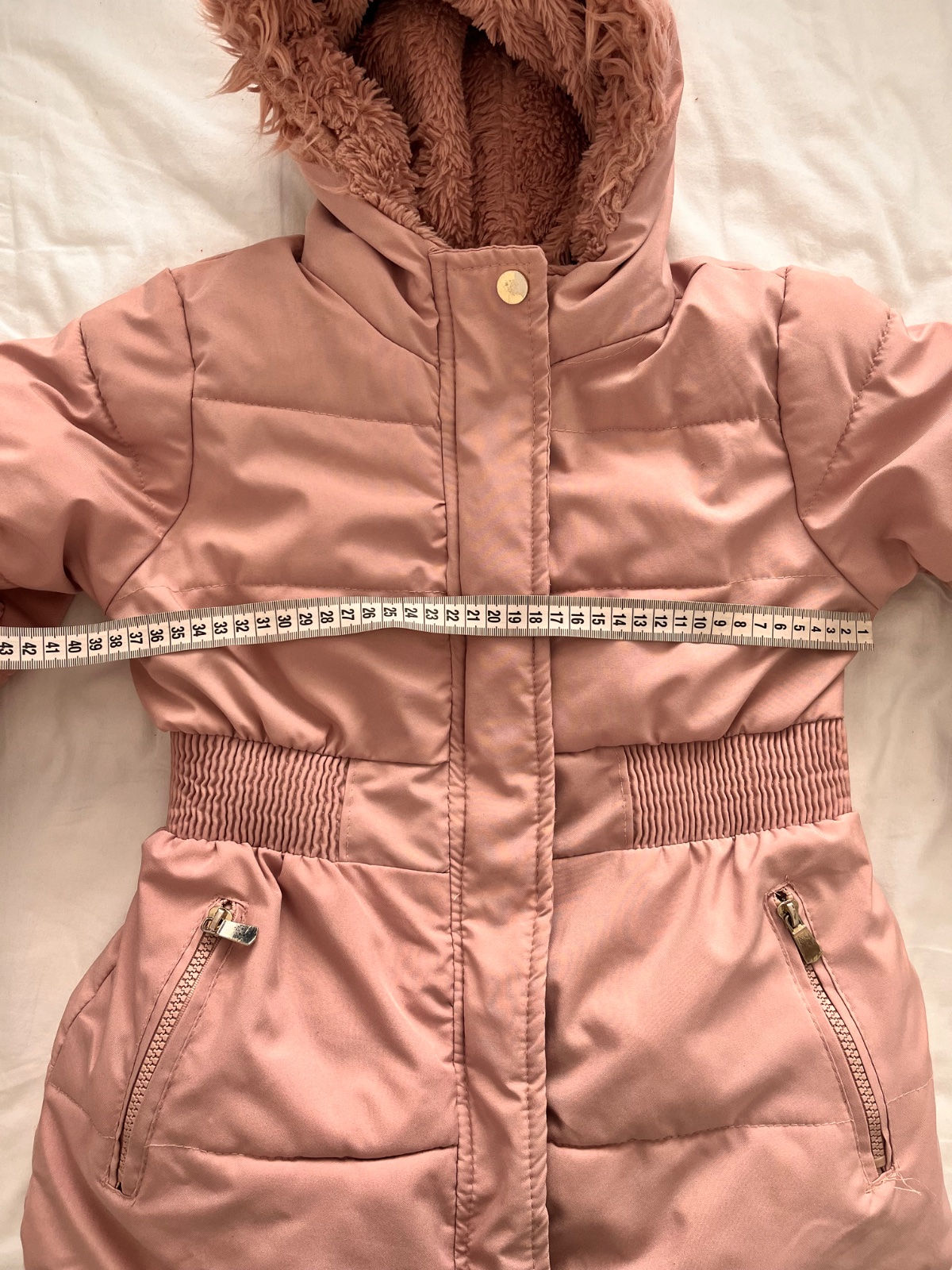 Teplá zimná bunda v tehlovej farbe,oblečené párkrát na striedačku s inými. Rozmery na foto. Dostupné 2ks vo veľkosti 116