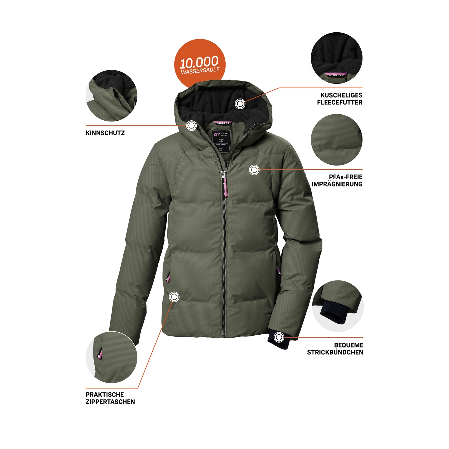 Bunda s kapucňou od značky Killtec kombinuje štýlový dizajn s funkčnými prvkami. Vysokokvalitný PU laminát a vodný stĺpec 10 000 mm robia bundu vodeodolnou a vetruodolnou. Vďaka svojim priedušným vlastnostiam ponúka pohodlný pocit. Pletené manžety na rukávoch poskytujú dodatočné pohodlie a chránia pred chladom. Teplý flís v chrbte zaisťuje útulné teplo. Kapucňa s flísovou podšívkou je nielen funkčná, ale dodáva aj módny nádych. Chránič brady na zipse zabraňuje privretiu.